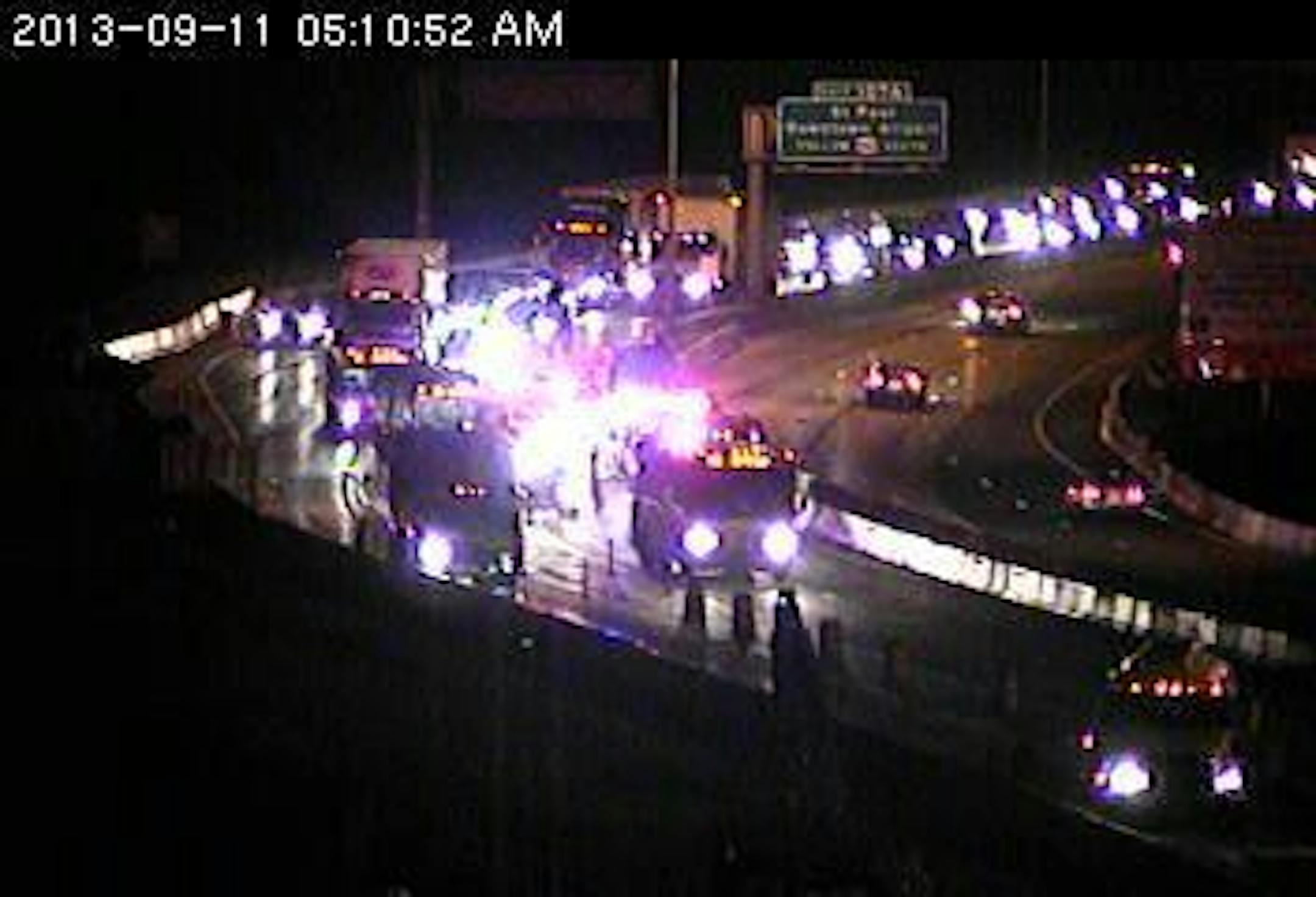 It's still early, but already we have a trouble spot. It's on northbound I-35E at Maryland Avenue where a semitrailer truck and vehicle collided. Both the right and left lanes are blocked and traffic is getting through in only the center lane.