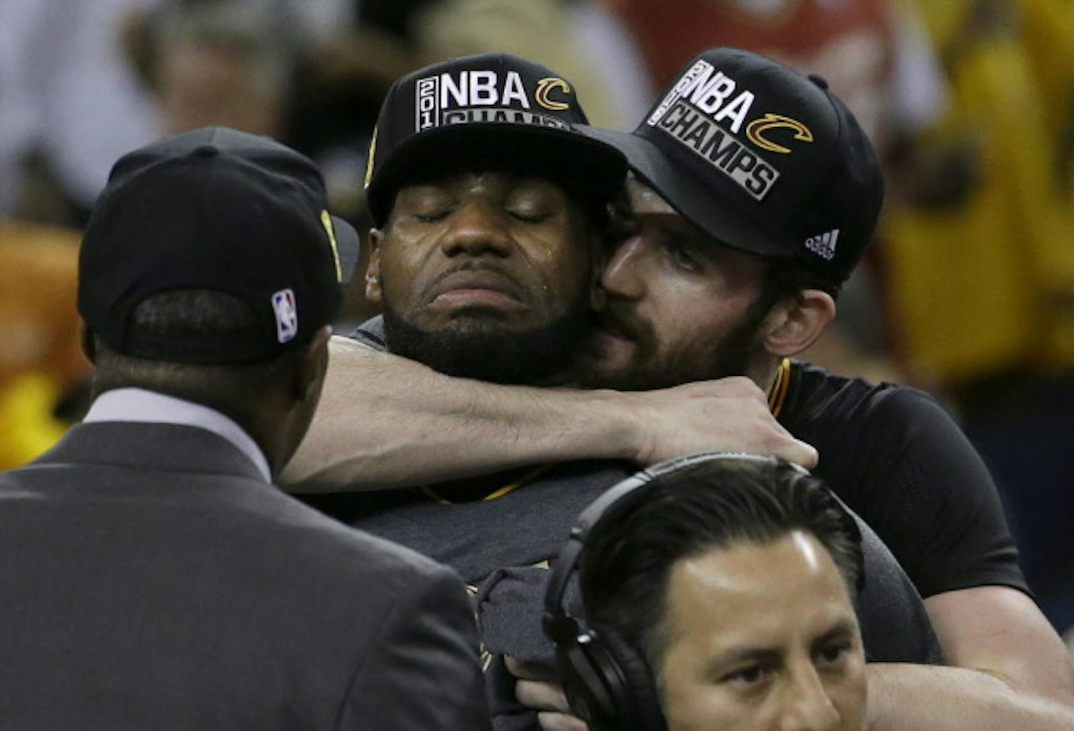 The postgame celebration centered on Love and James embracing one another in the moments after the final buzzer.