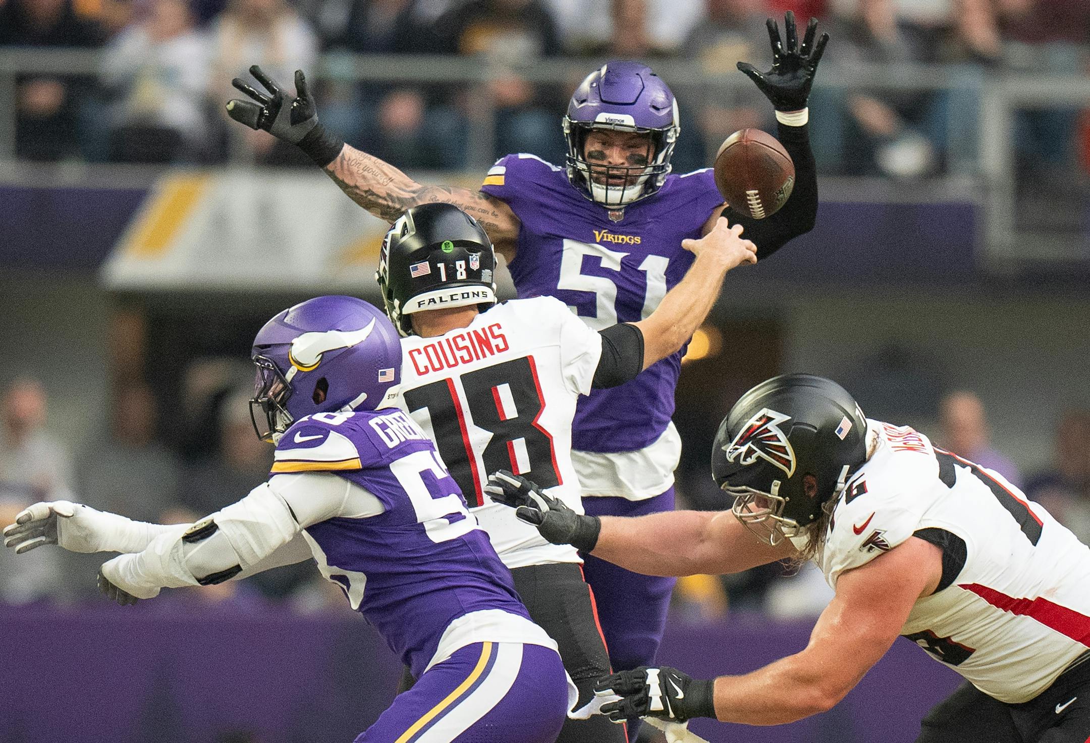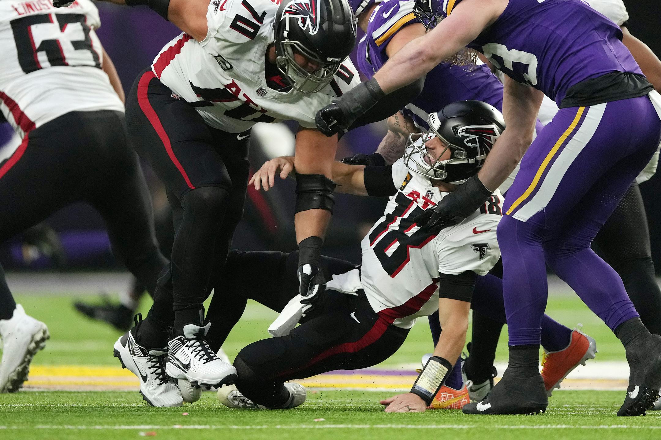 The enduring image of his personal nightmare came late in the fourth quarter, when the Vikings’ runaway 42-21 win over the Atlanta Falcons was nearly complete.