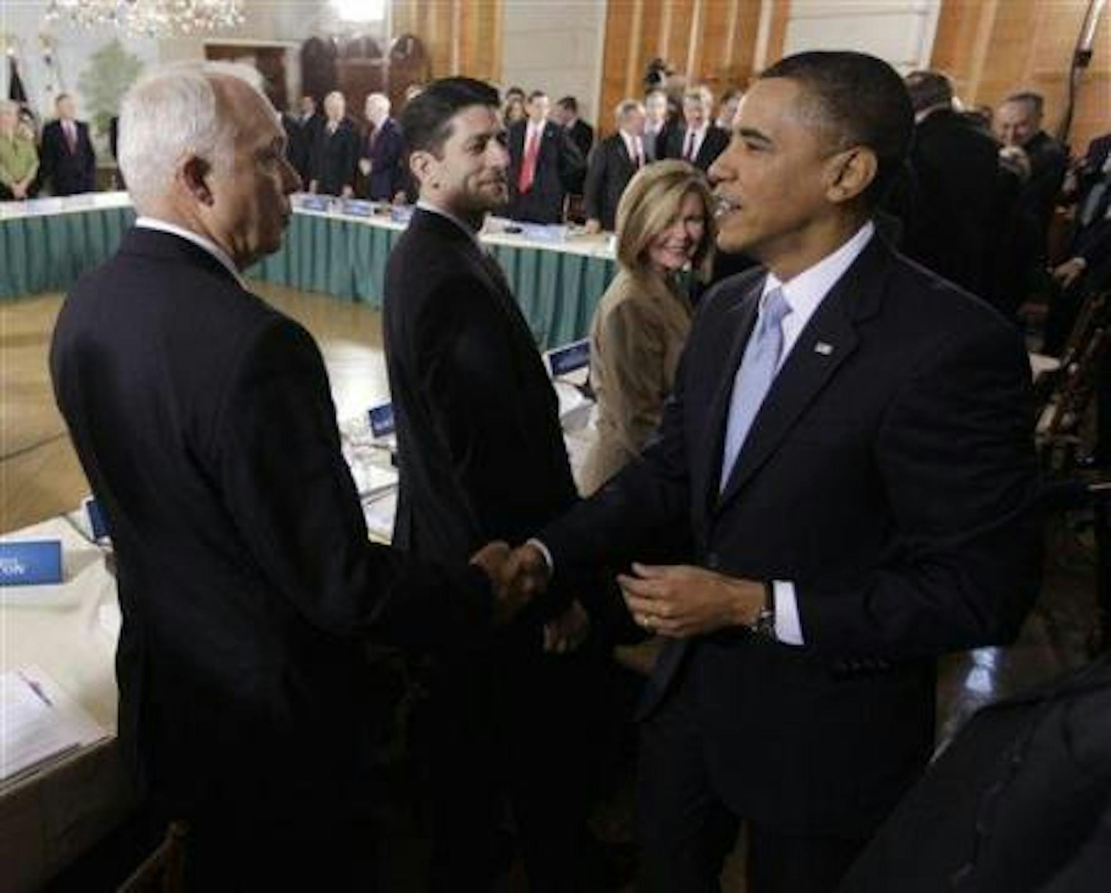 U.S. Rep. John Kline, the ranking Minnesota Republican in Congress, is headed to the White House Thursday morning to parlay with President Obama on education reform. It will be their first personal encounter since nearly a year ago, when Kline participated in a health care summit with the president. (see accompanying photo, with Wisconsin Rep. Paul Ryan looking on in the middle). As chairman of the House Education and Workforce Committee, Kline is expected to play a big role in shaping the next incarnation of the Bush-era No Child Left Behind law. Accompanying him to the White House will be the "Big 8" in education policy: the chairmen and ranking members of the four committees of jurisdiction in the House and Senate.