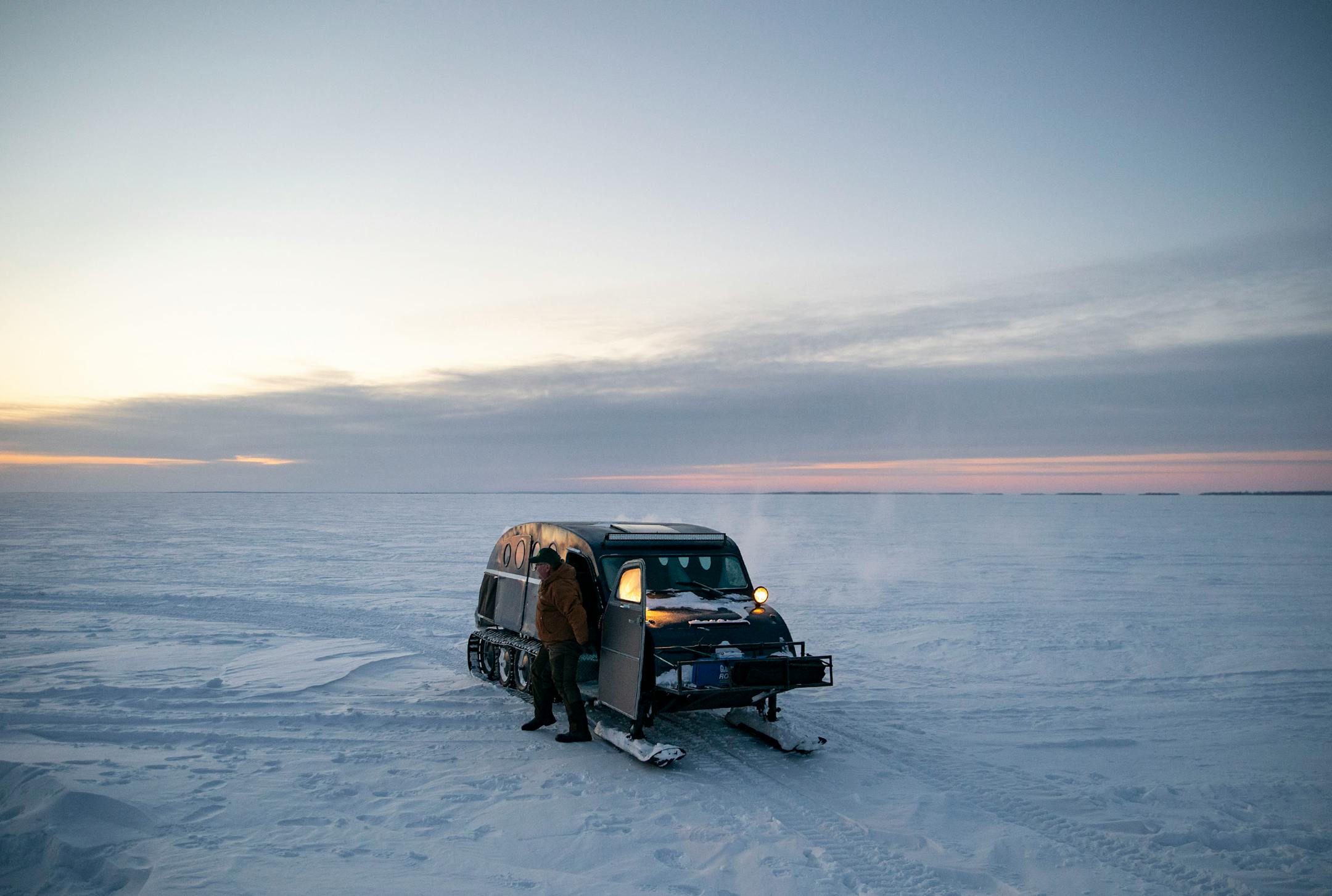 The bomber was en route to a fishing location when it crashed through about 12 inches of ice and began to sink in about 10 feet of water. The Lake of the Woods County Sheriff's Office said in a news release Friday that the driver, along with a nearby party, began getting passengers out of the vehicle "until the cold water prohibited their continued efforts."