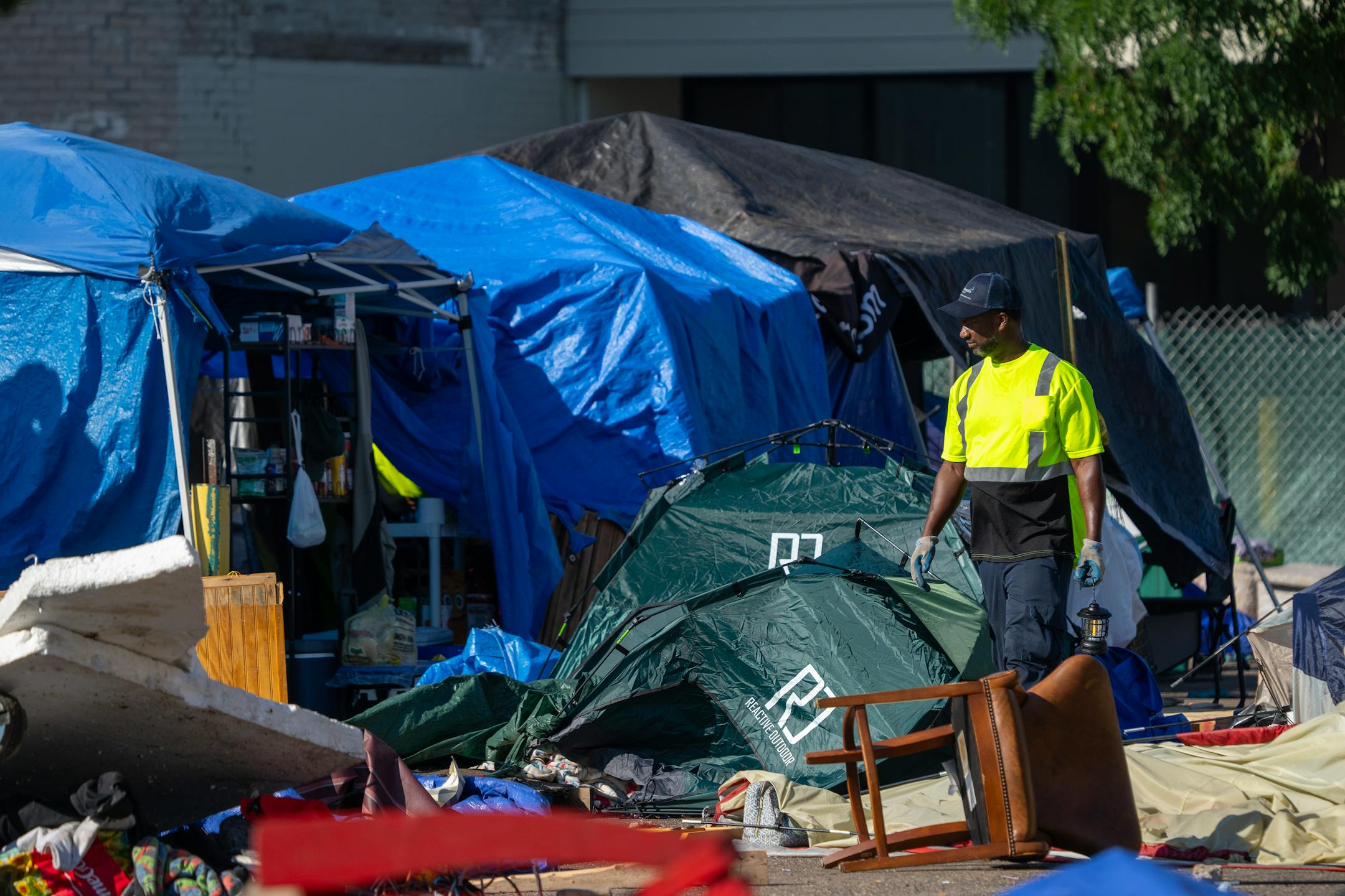 “I think it’s [messed] up how they started destroying everybody’s stuff, throwing everybody’s stuff away ... And there, it’s cleared now,” Moore said as she smoked a cigarette on a picnic bench at El Nuevo Campo Park, a block away, the following afternoon.
