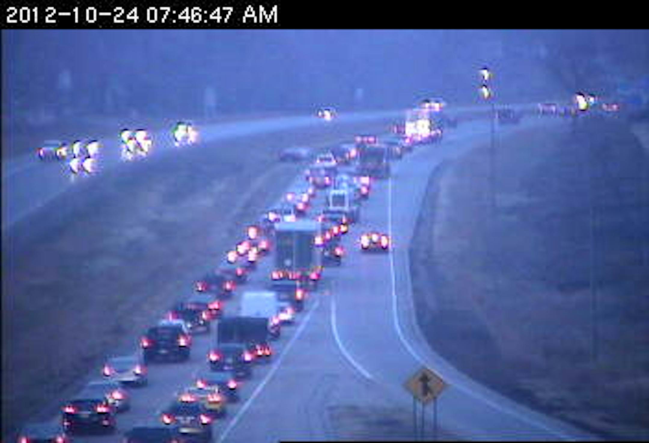 A couple of vehicles are off to the left shoulder on northbound 35 in the area of County Road 60 in Lakeville.