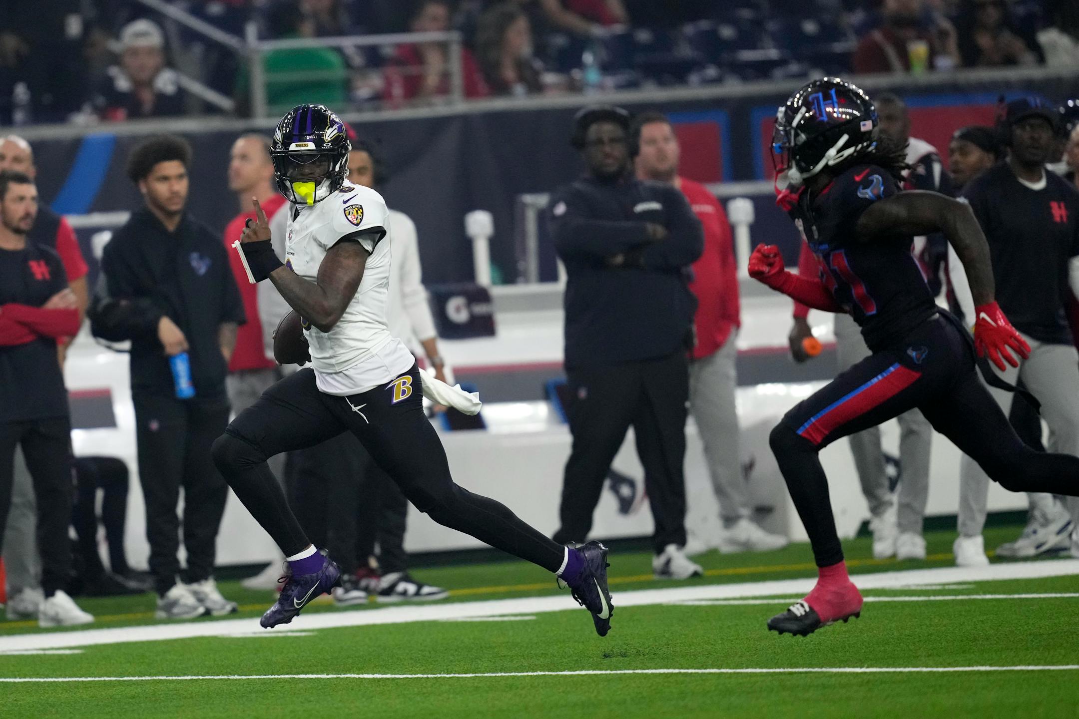 HOUSTON — Lamar Jackson broke the NFL career rushing record for quarterbacks in the Baltimore Ravens' victory over the Houston Texans on Wednesday.