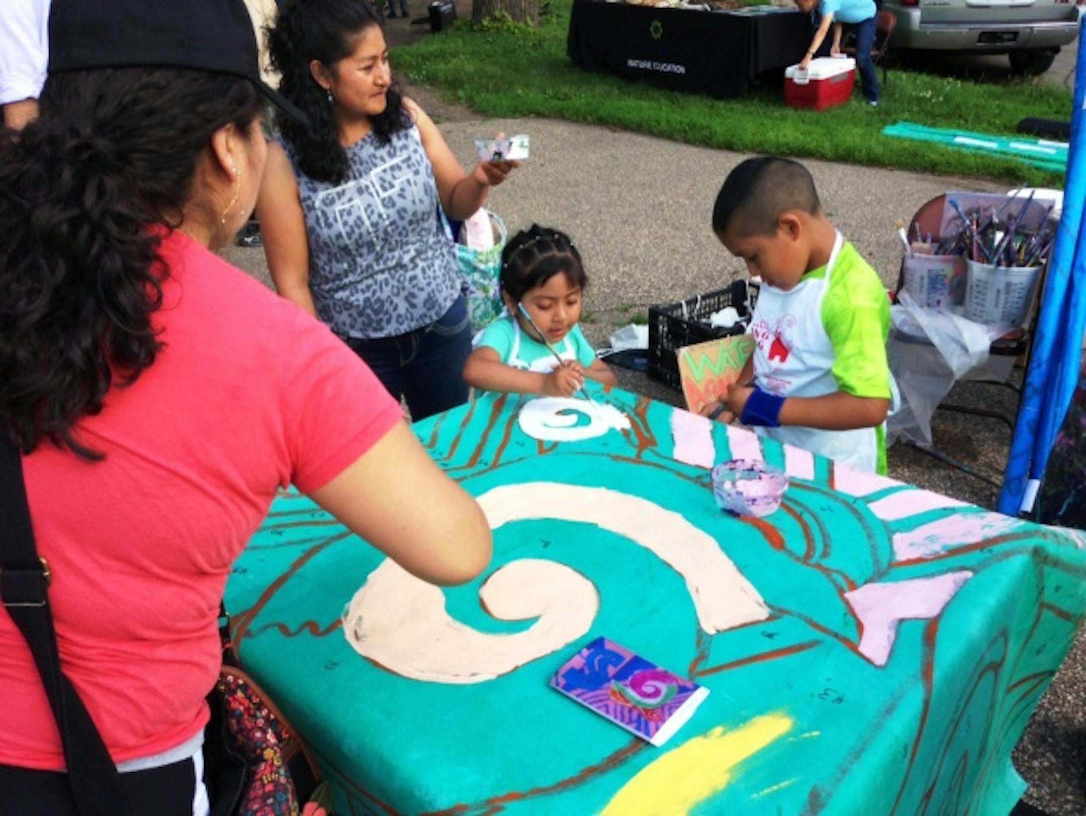 The painting under the direction of professional muralist Greta McLain took place in a series of seven workshops earlier this year at places such as Sibley Park and Midtown farmers market. Painters from grade school age to Nokomis-area seniors participated.