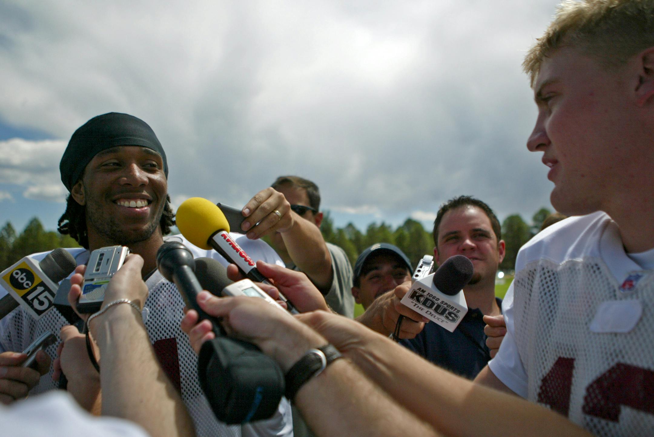 The morning practice hasn’t started yet. Young defensive backs and receivers are sneaking in some extra reps catching punts off the JUGS machine.