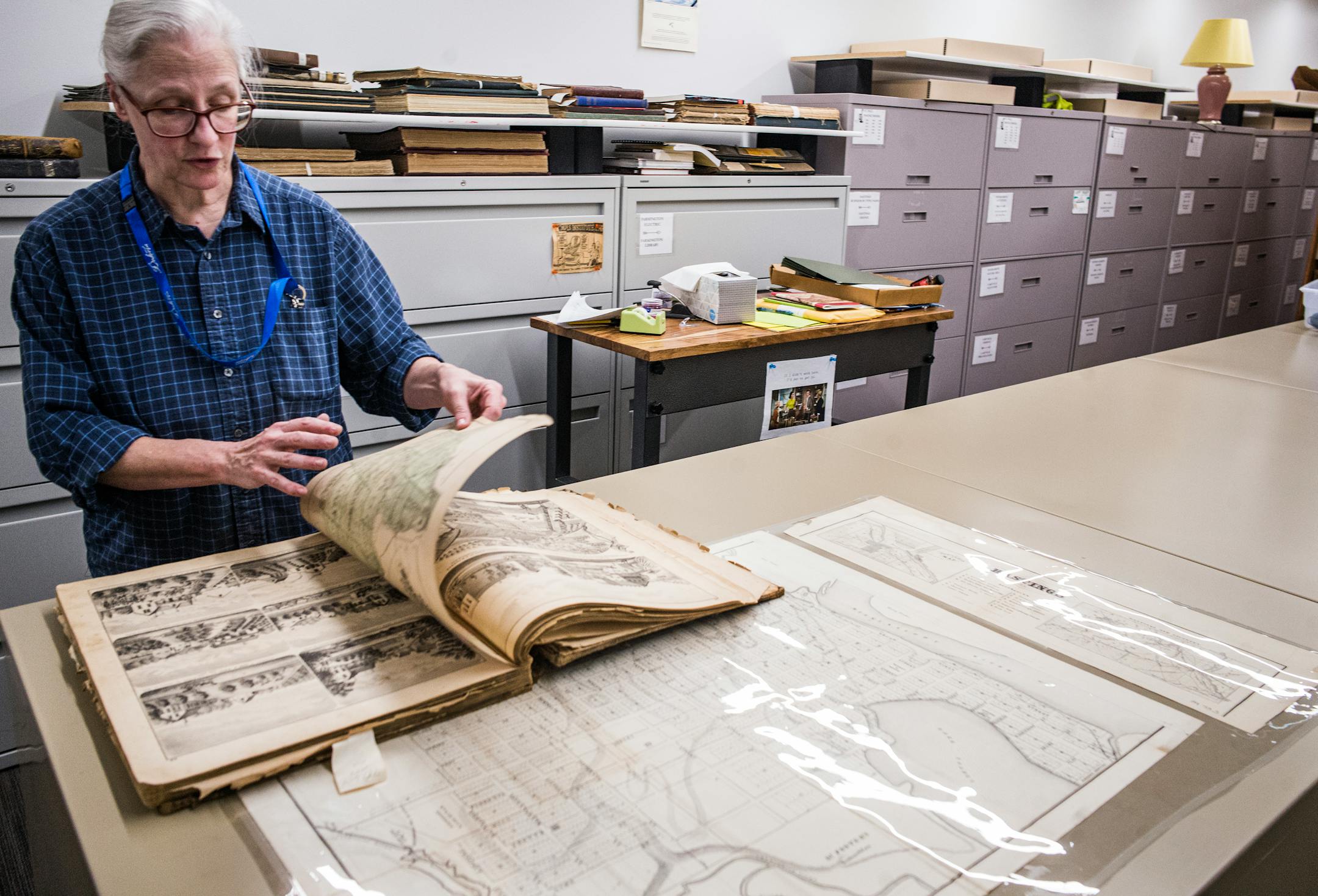 Upstairs, there's a larger archives area for staff and a revamped meeting room with a new in-ceiling projector and speakers for presentations on topics like genealogy. The meeting room, which can be rented out, also has an ADA-accessible kitchenette.