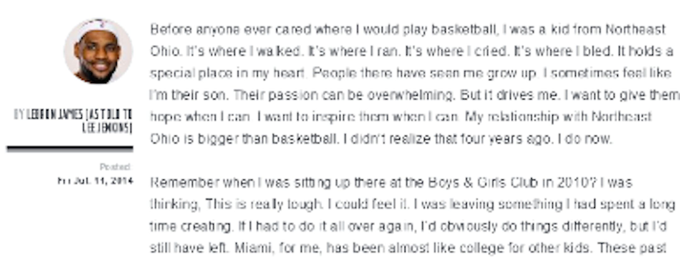 An excerpt from the SI.com piece from LeBron, as told to Lee Jenkins: