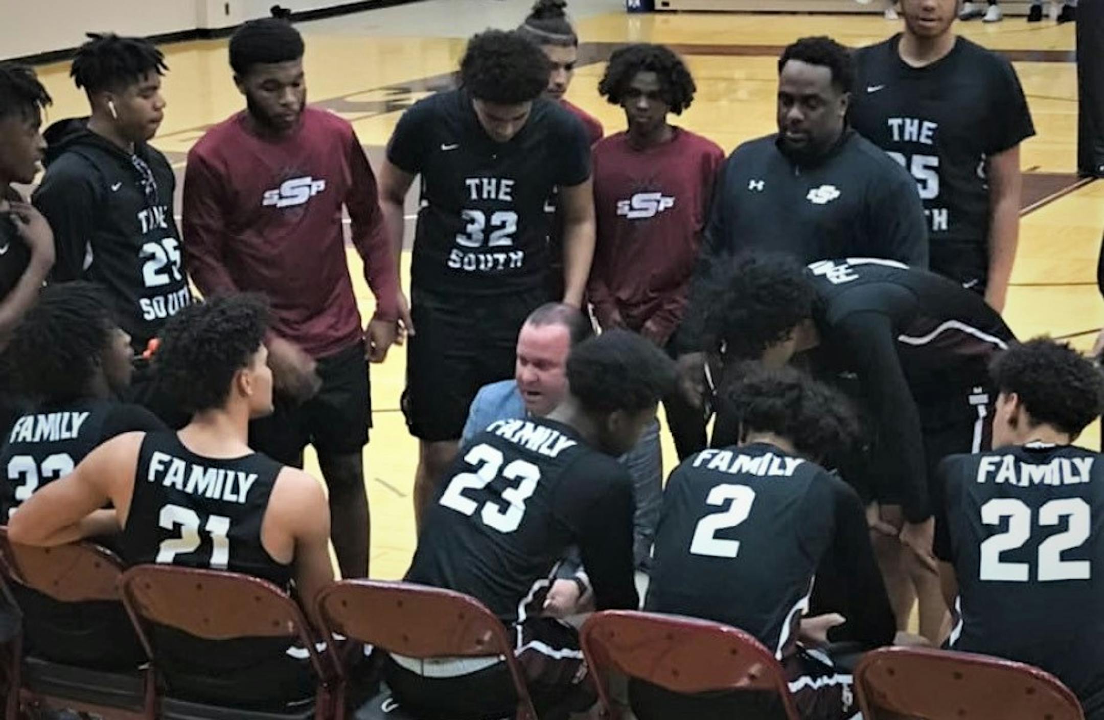 South St. Paul coach Matthew McCollister giving instructions during a timeout.