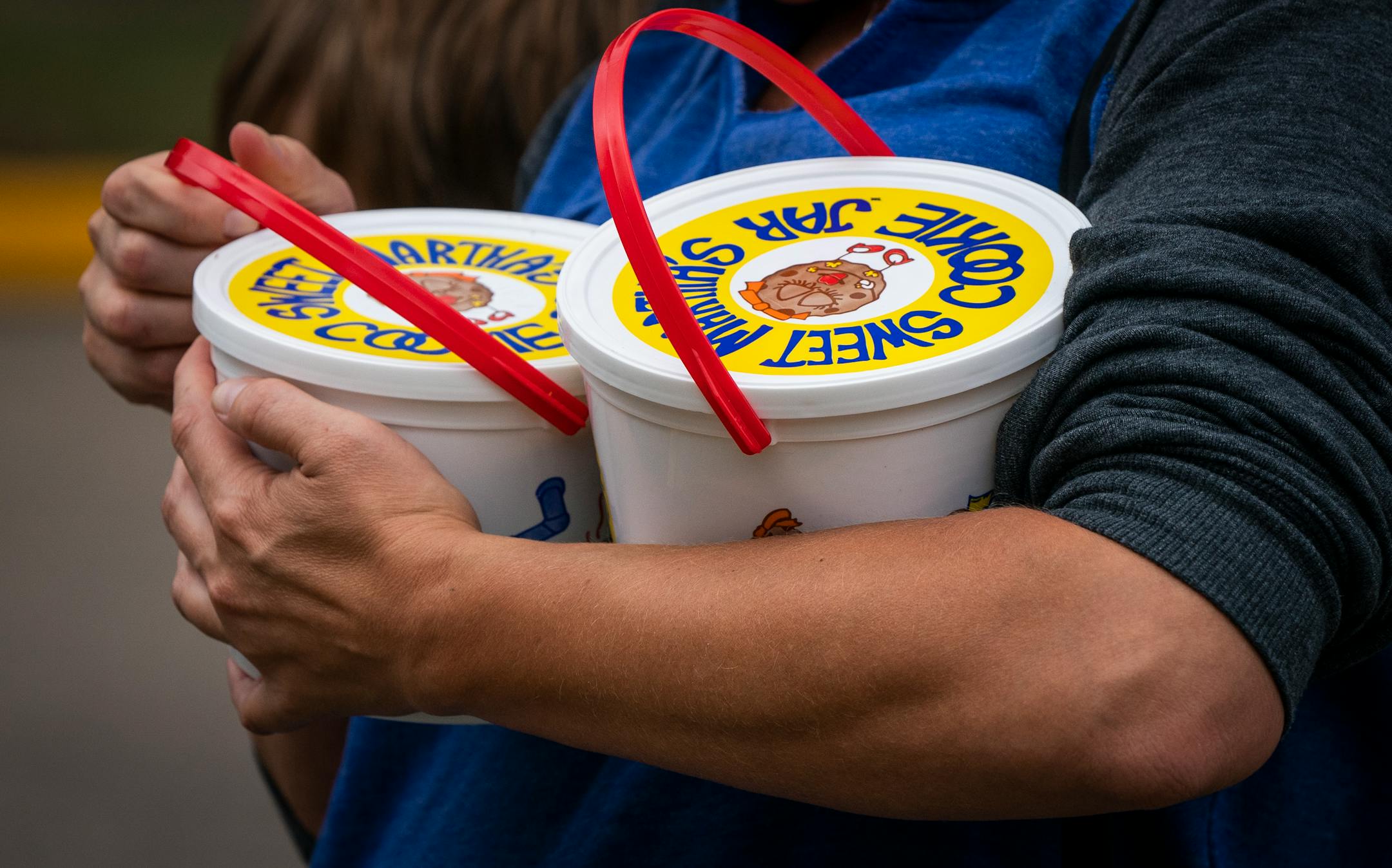 If you’re a purist: We get it, you want to enjoy your bounty as it is meant to be. Just pop the cookies, bucket and all, into the freezer as soon as you get home. Take three (or four) frozen cookies out at a time, pop them in the microwave for 10 to 15 seconds and it’ll be like time never passed.