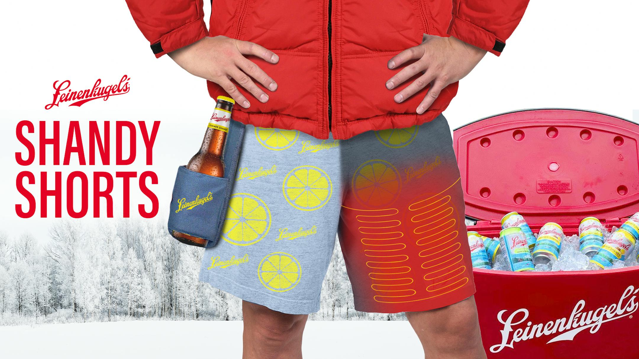On sale today at 11 a.m., for $55 a pair (leinie.com/sandyshorts), the limited-edition Leinie's shorts have heating elements (powered by rechargeable battery) in the legs, an external bottle holster, and a cheerful lemon print to celebrate the return of the brewer's seasonal, citrus-spiked Summer Shandy.