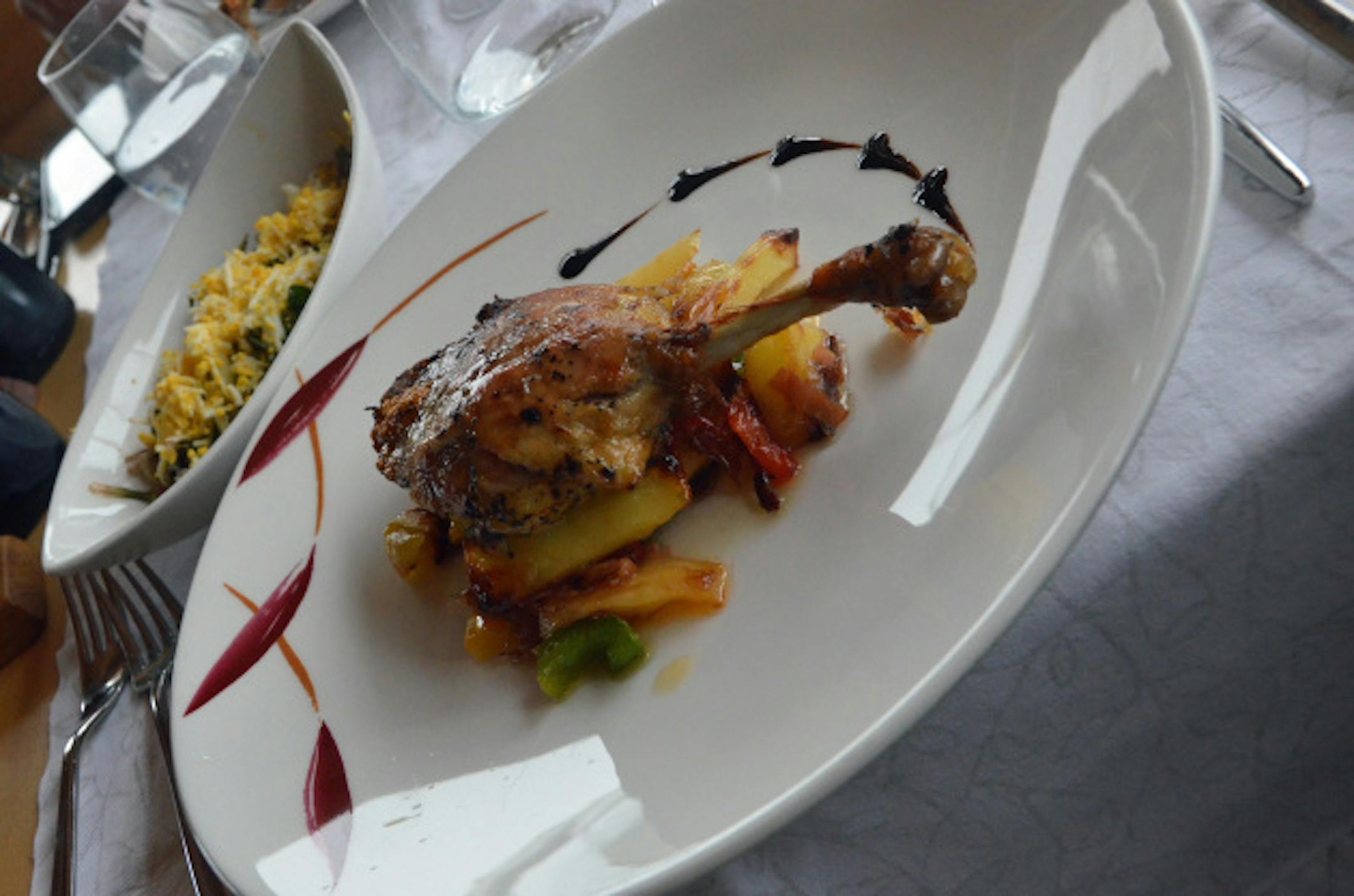 That was followed by duck confit served atop roasted vegetables. There was also a dandelion salad with bacon, grated egg and a dressing comprised of rendered pork fat with apple cider vinegar.