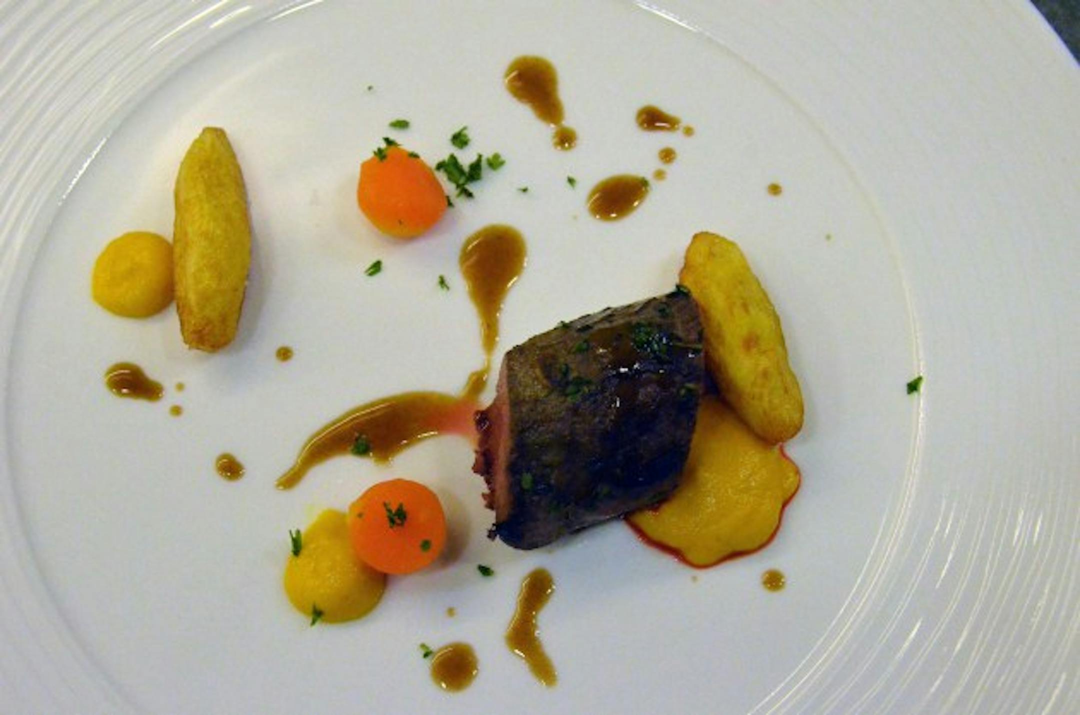 Venison loinVelike rdeče wine reductionCarrot puree, potatoes...Fried sageVeliko Rdeče 2003 Movia ***Slovenian cheesesOnion marmelade, acacia honeyVeliko Belo 1999 Movia
