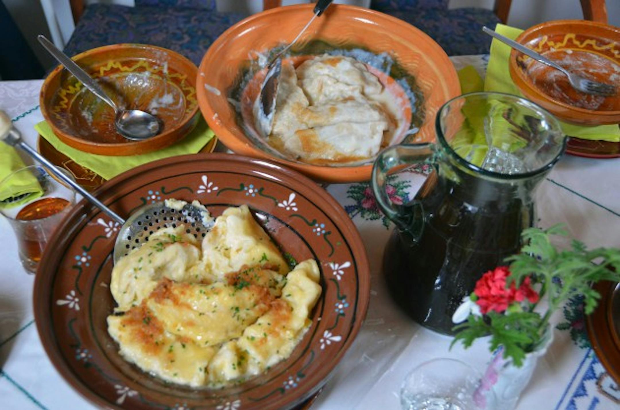 Then they gave me lessons on the making of traditional Slovenian krape which are dumplings, both savory and sweet, stuffed with a mixture of reconstituted dried tepka pears topped with either a sweetened bèchamel or ground pork. We finished with some tepka schnapps.
