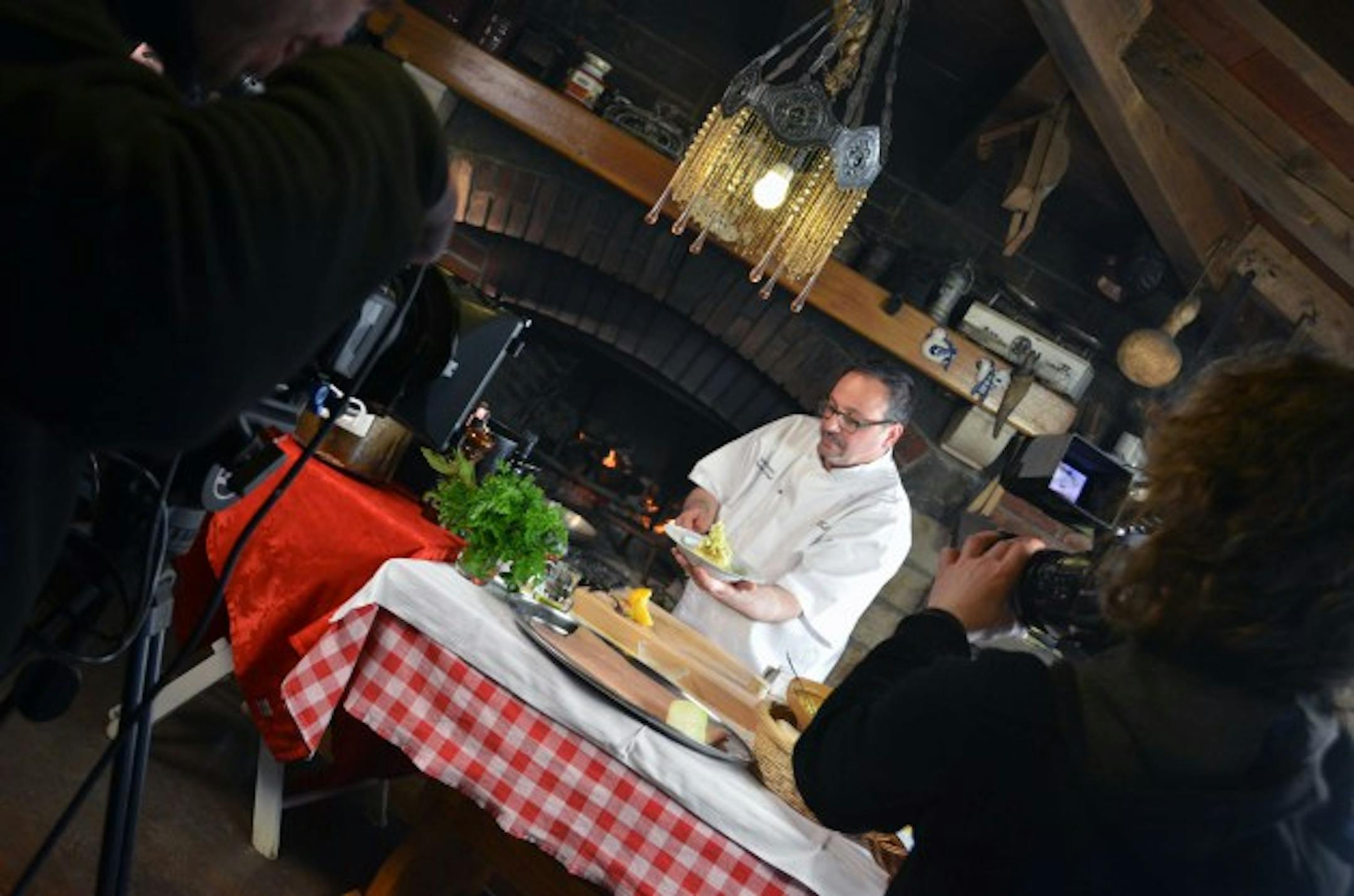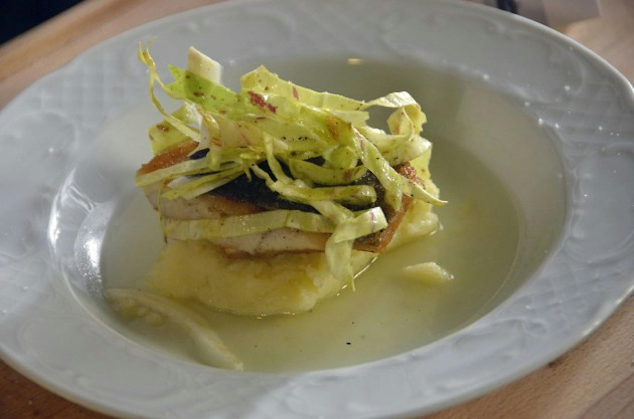 After that, we headed into the uplands of Istria where I prepared a meal from that morning's trout cooked over an open fire along with potatoes mashed with the black truffles and a garnish of variegated radicchio with fresh fennel tossed in lemon juice and Franc's lemon-infused olive oil.