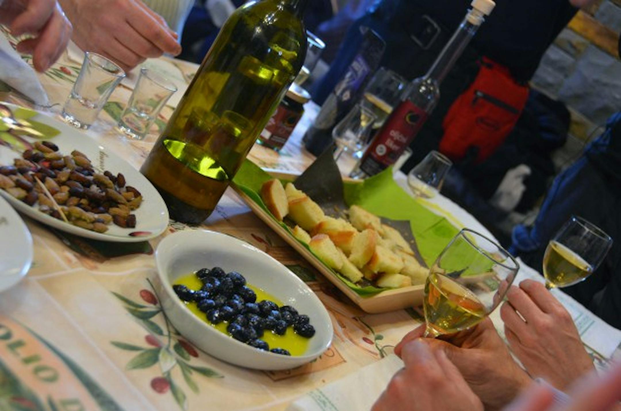 We tasted several varieties including orange-infused oil that is pressed with whole oranges. It was poured over vanilla gelato and a lemon-infused variety made in the same way I later used at a dinner prepared the next evening. We also tasted an olive based digestif.