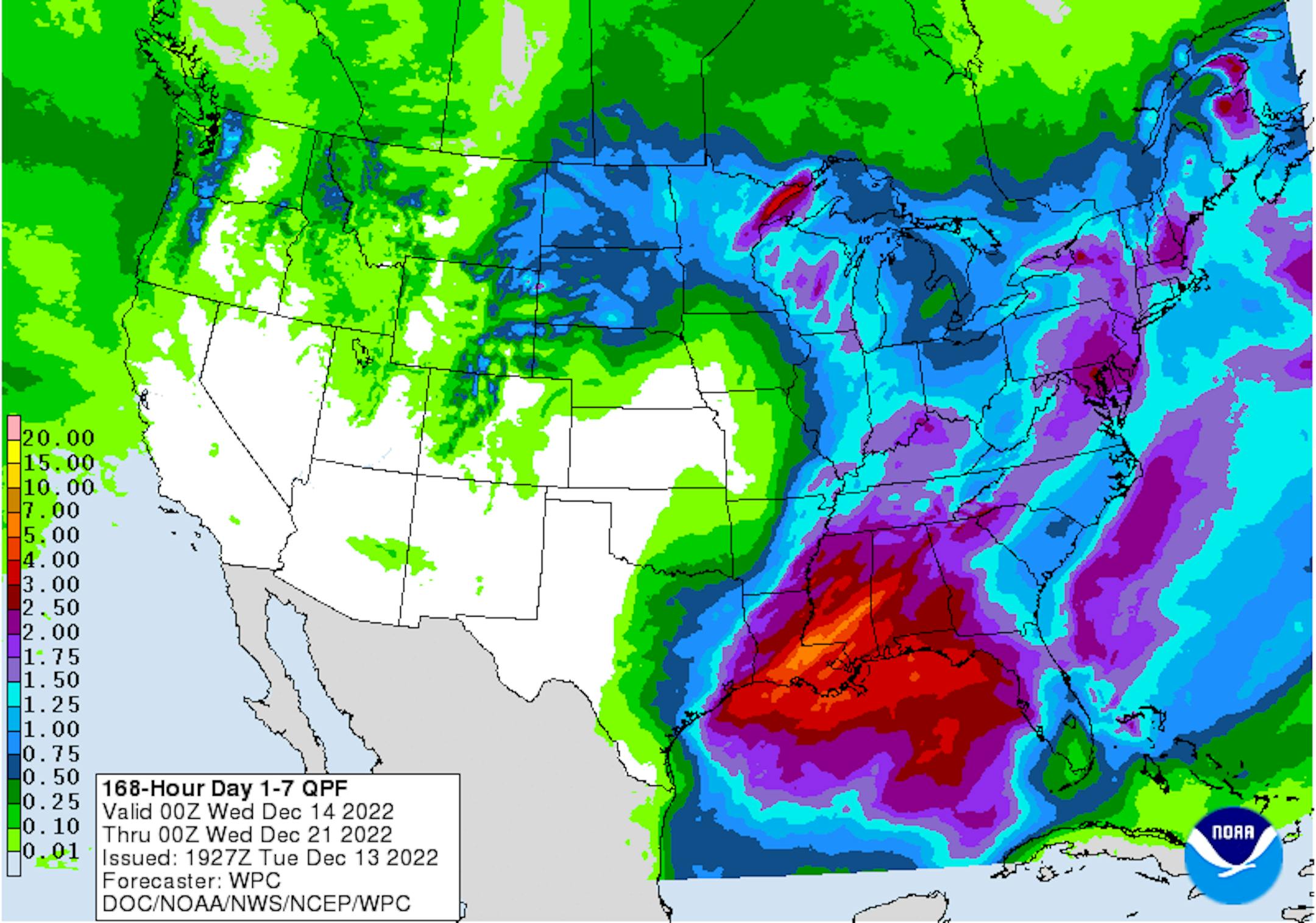 The temperature trend over the next several days will be warmer than average as the storm system passes by. The extended temperature outlook show much colder weather in place as we approach Christmas.