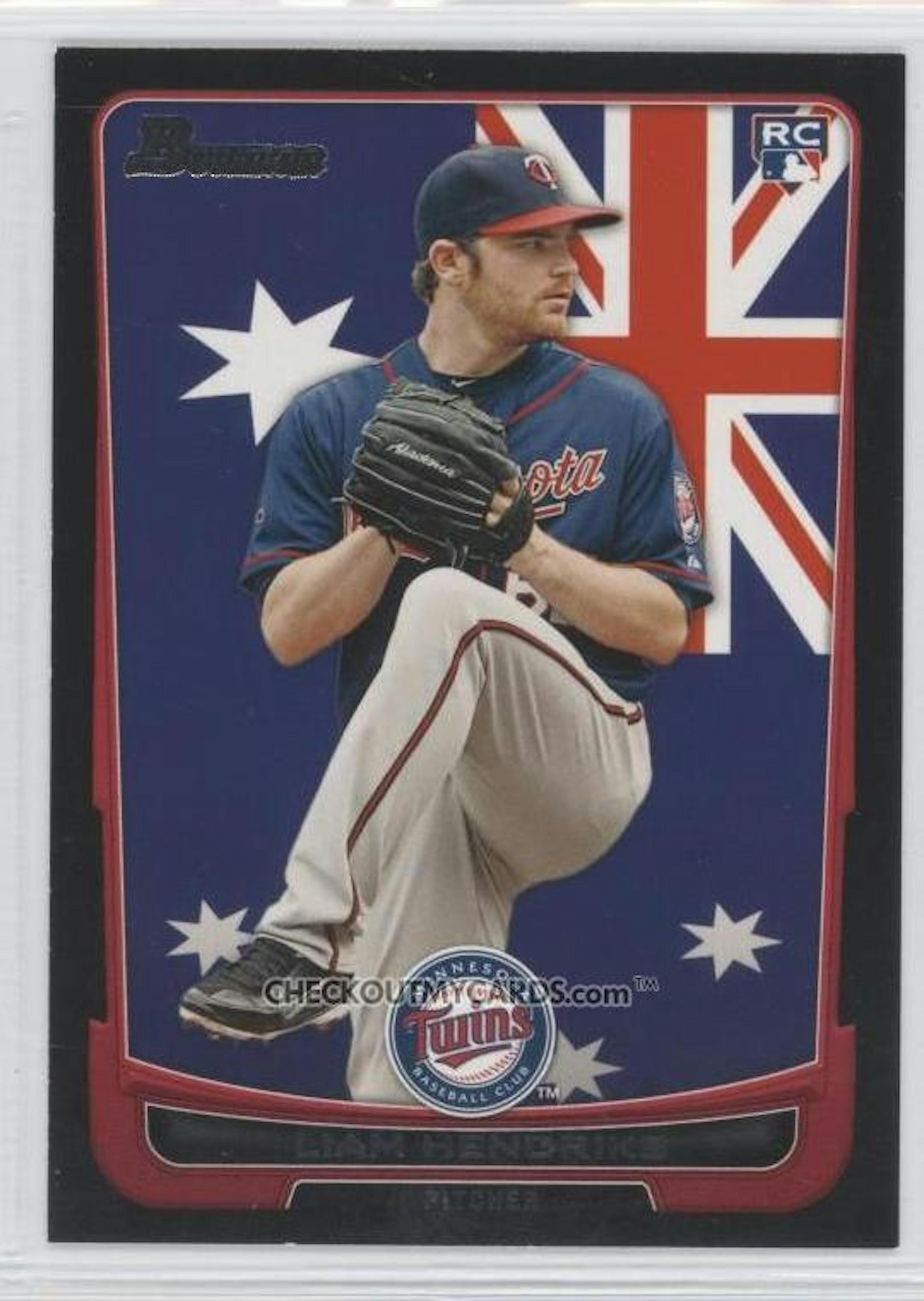 Most fans send baseball cards for him to sign -- if you're writing to a player, don't forget to enclose a stamped, addressed return envelope, because you've got no shot with most players if you don't -- and several enclose an extra card or two for him to keep. He was showing me a few of them, and was particularly proud of a Bowman card with the Australian flag printed on it. He's from Perth, of course.