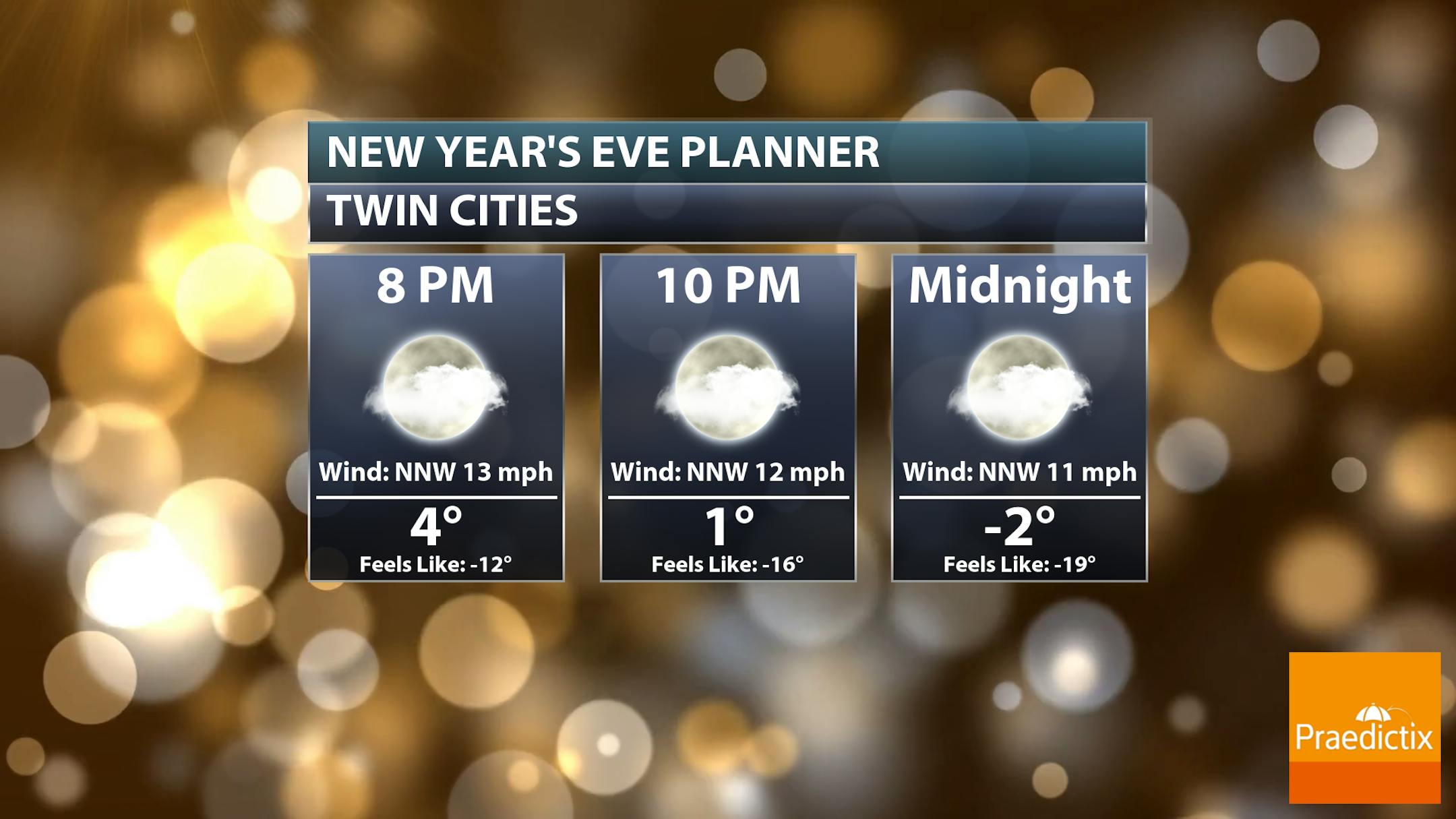 As you get ready to sing "Auld Lang Syne" at midnight Friday night (me? I'll likely be several hours asleep already), you are going to want to be bundled up in several layers as you head outside. Temperatures will drop through the single digits above zero through the evening hours, reaching the single digits below zero to ring in 2022 with feels like temperatures near -20F.