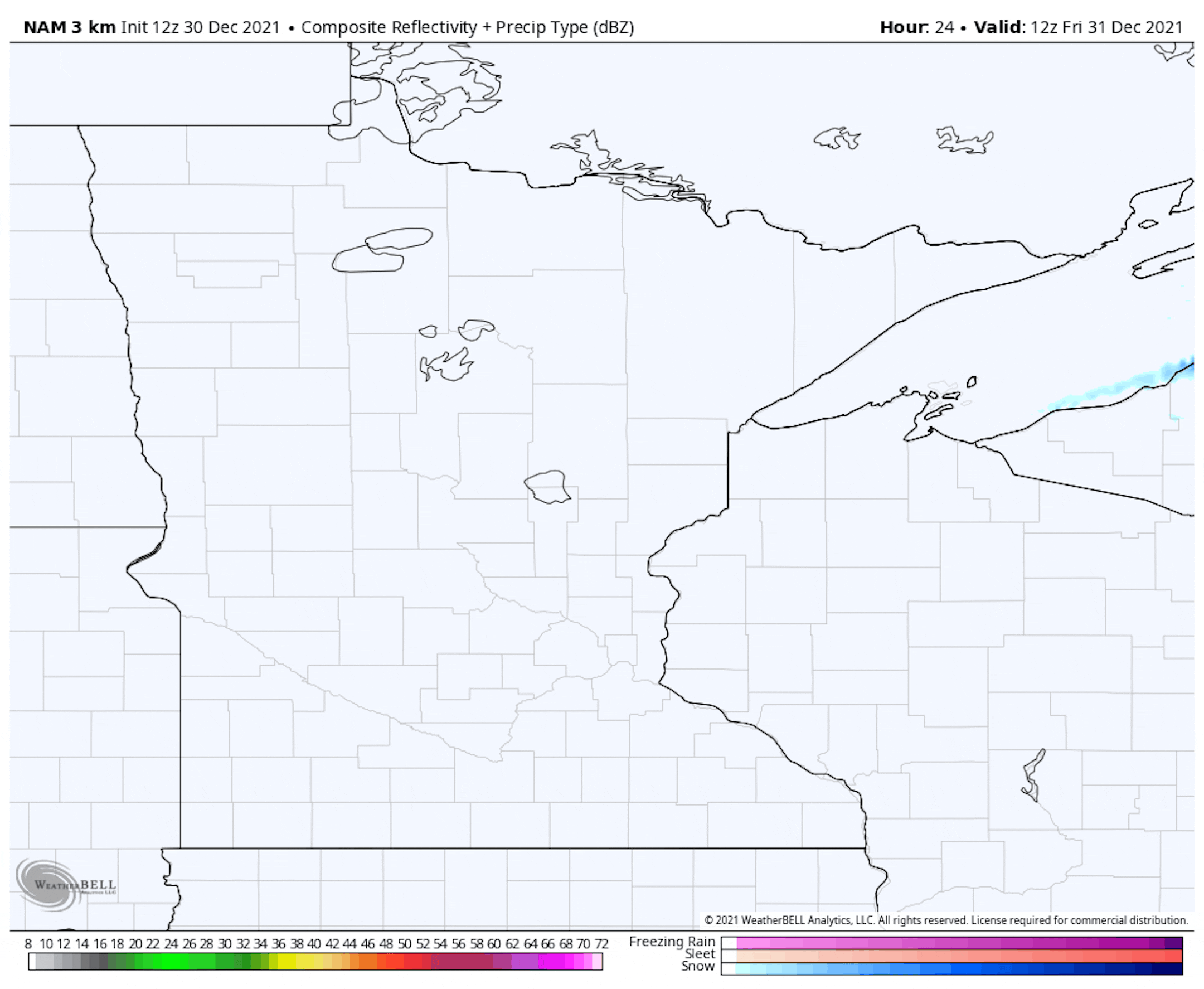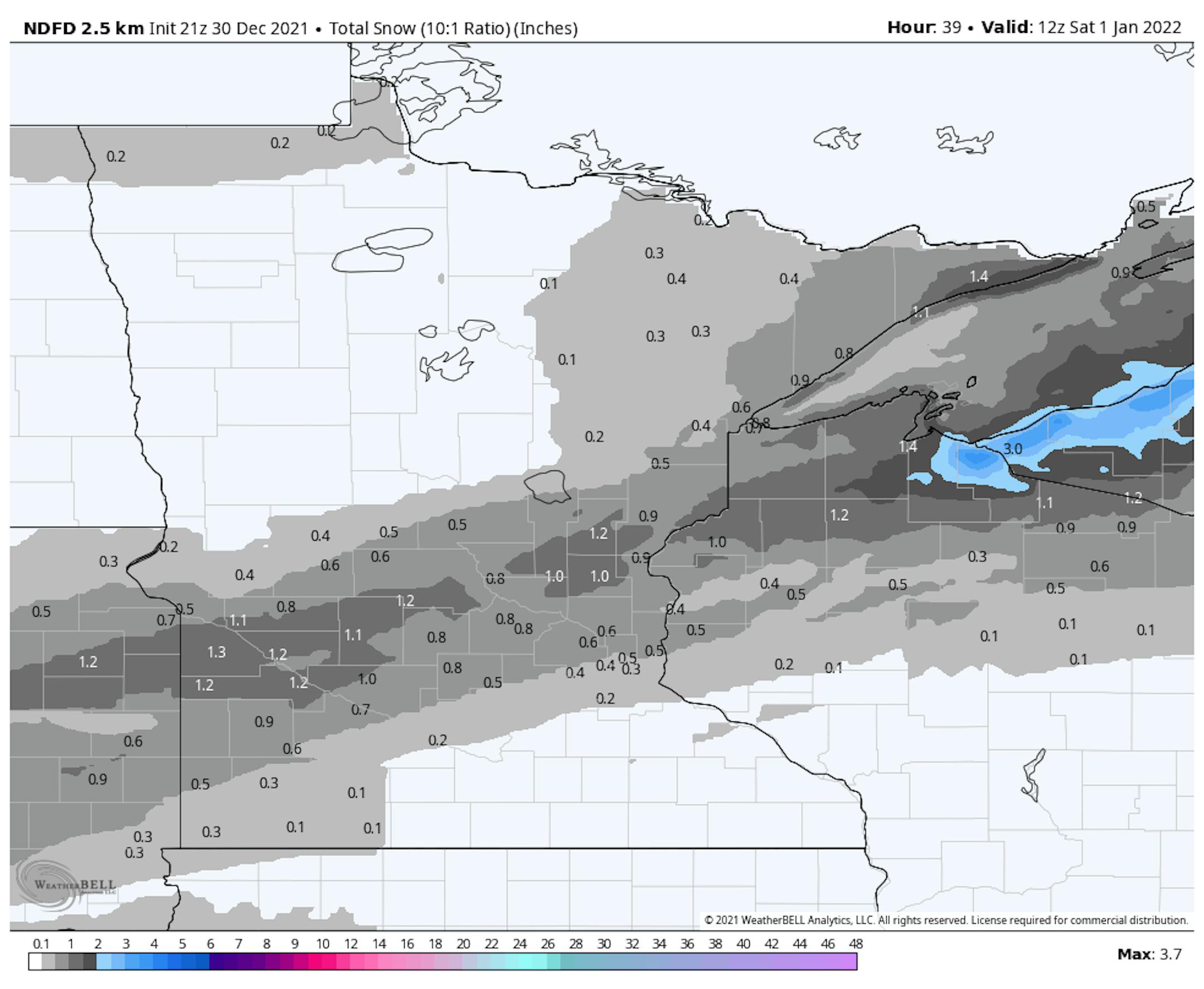 And this fast-moving band looks to produce an inch or two of snow for locations across central Minnesota as we head through Friday. One last dash of snow before the calendar turns to 2022.