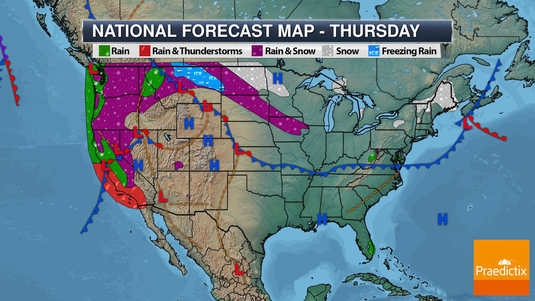 Forecast loop from Midnight Wednesday Night to Noon Thursday.