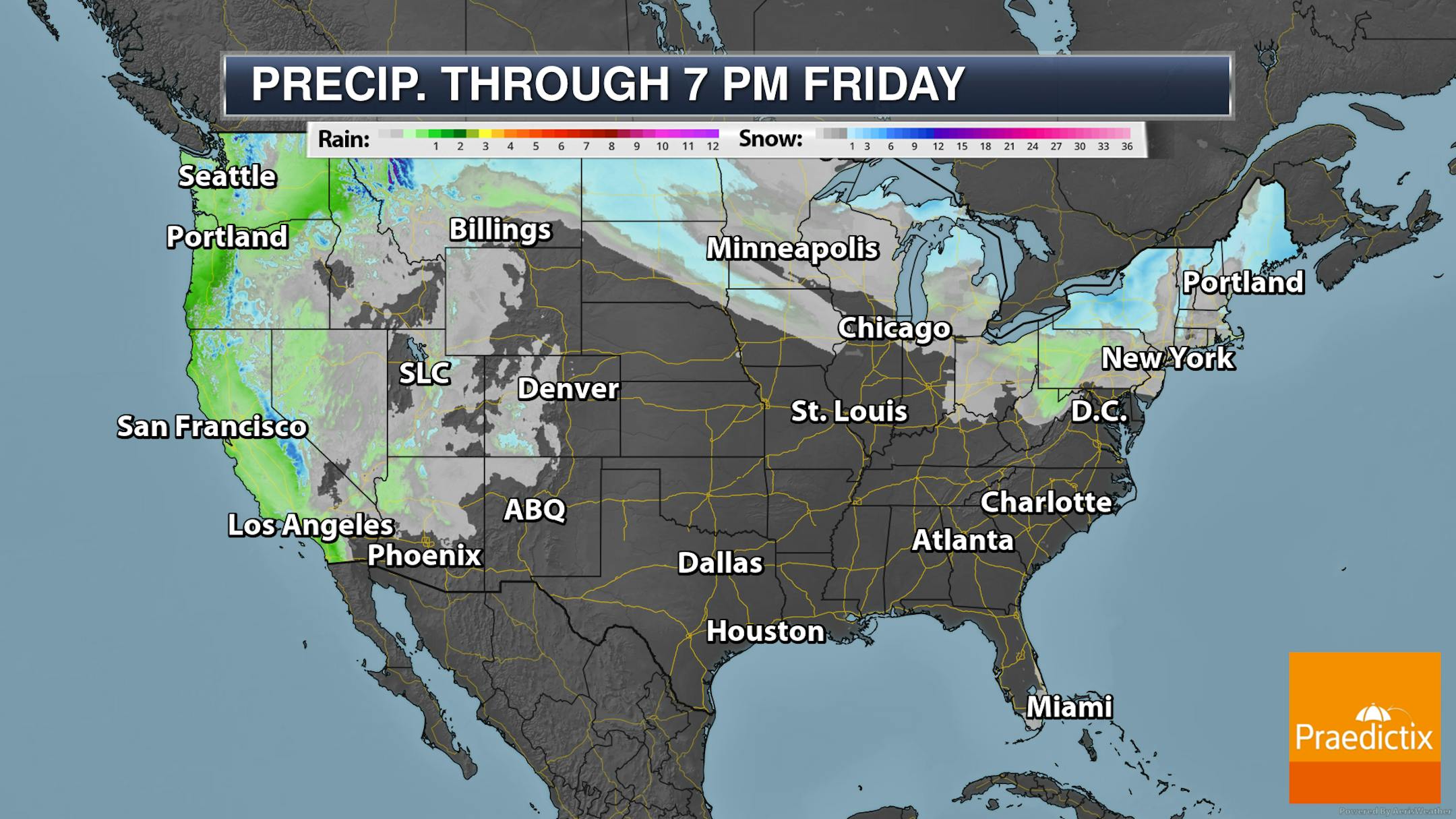 We could see a narrow band of snow form as we head into Thursday evening from near I-94, lifting northward as we head through the overnight hours into early Friday. Snowfall amounts are only expected to be a few tenths of an inch.
