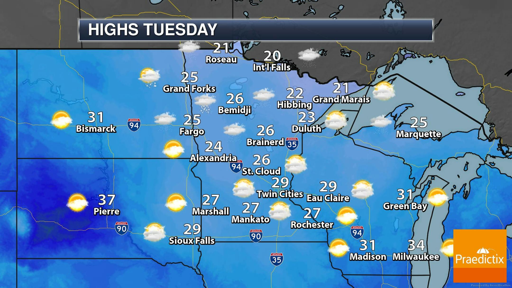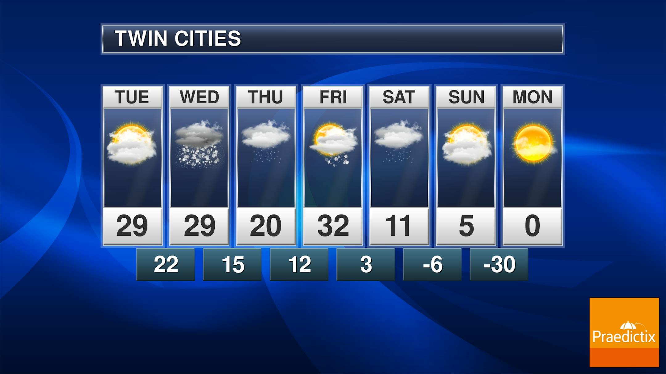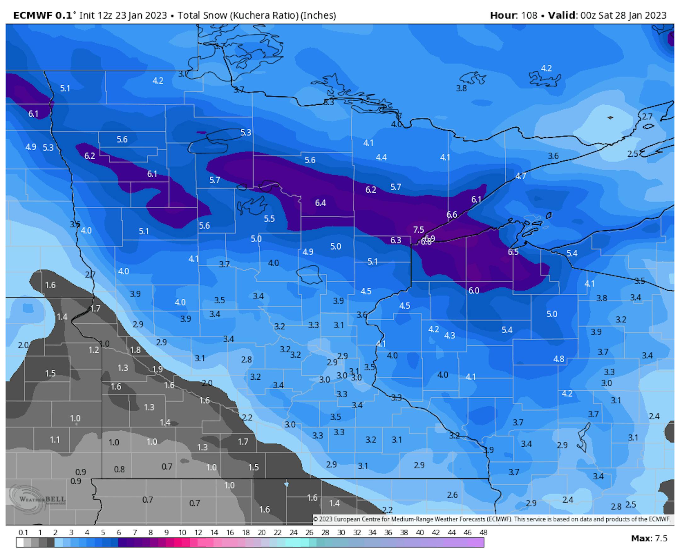 According to the ECMWF (European model), there is a chance for accumulating snow this week, mainly along and north of the Minnesota River Valley and especially north of the I-94 corridor. Some locations across the northern part of the state could see 3" to 6" total tallies, which would be enough to shovel and plow. Stay tuned...