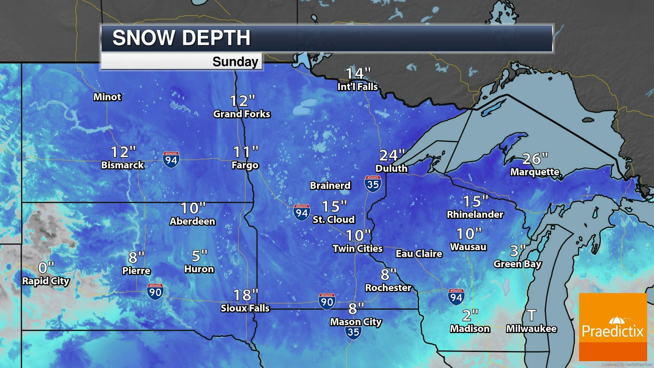 As of Sunday, January 22nd, the MSP Airport recorded 10" of snow on the ground. Interestingly, this tied for the 18th greatest snow depth on record for January 22nd!