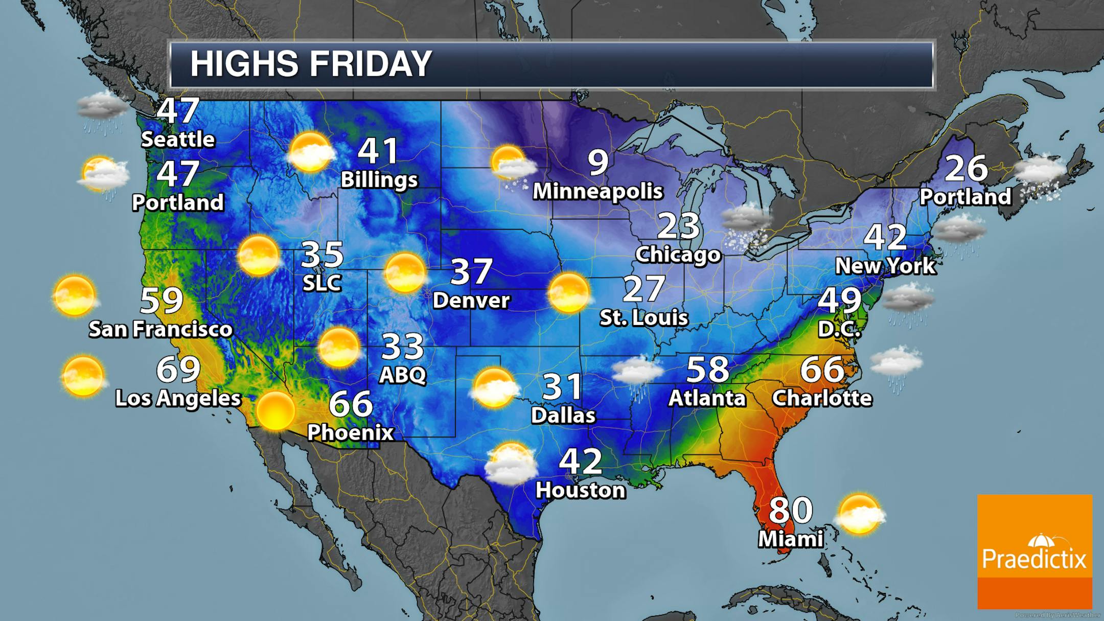 So again we'll watch some light snow moving across the state during the morning hours on Friday with clouds decreasing for the most part in the afternoon. Highs for many areas will be in the single digits.