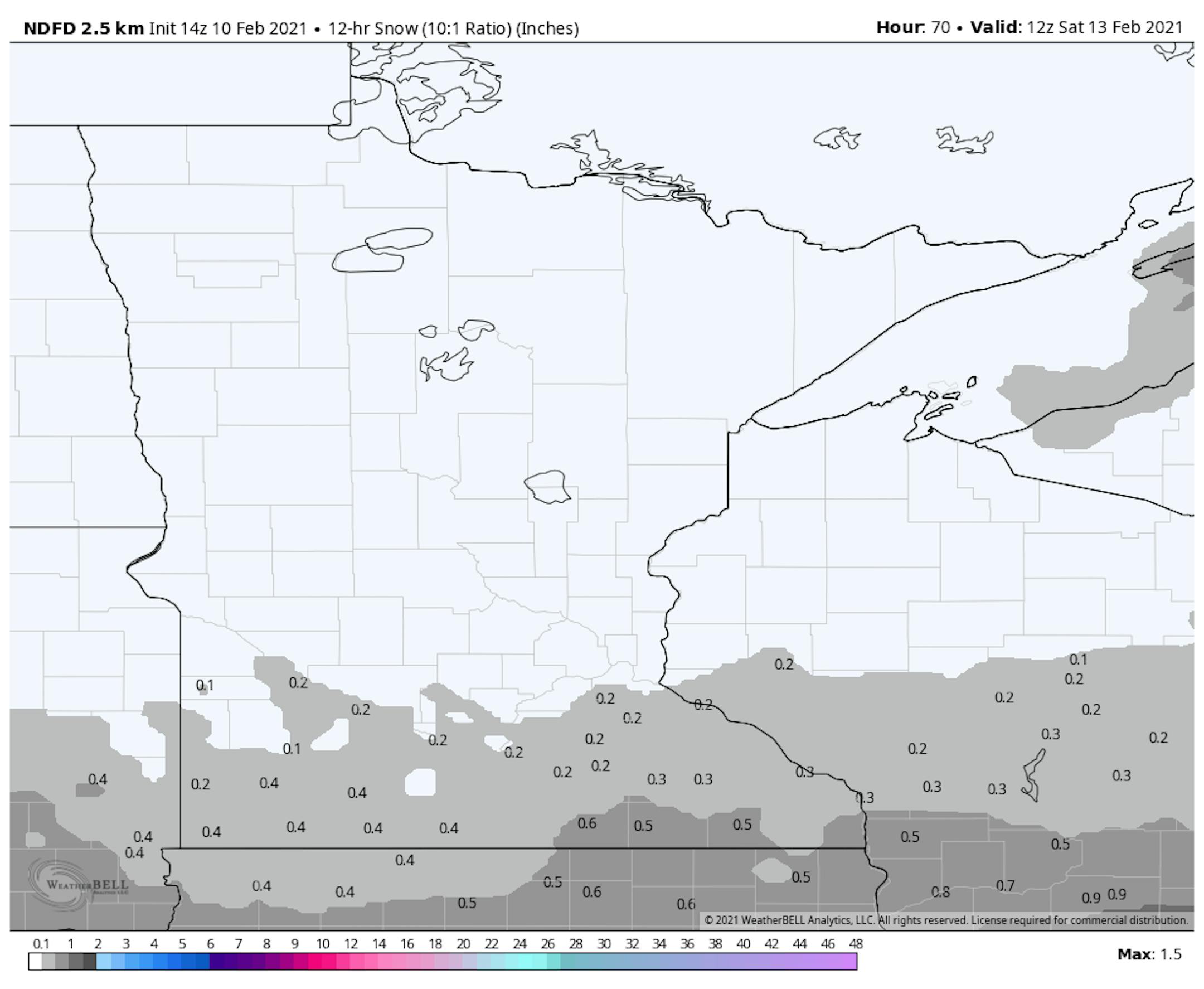 Another light snow chance will move across southern Minnesota Friday Night into early Saturday mainly south of the 494-694 loop. In some areas, up to a half an inch of snow will be possible.