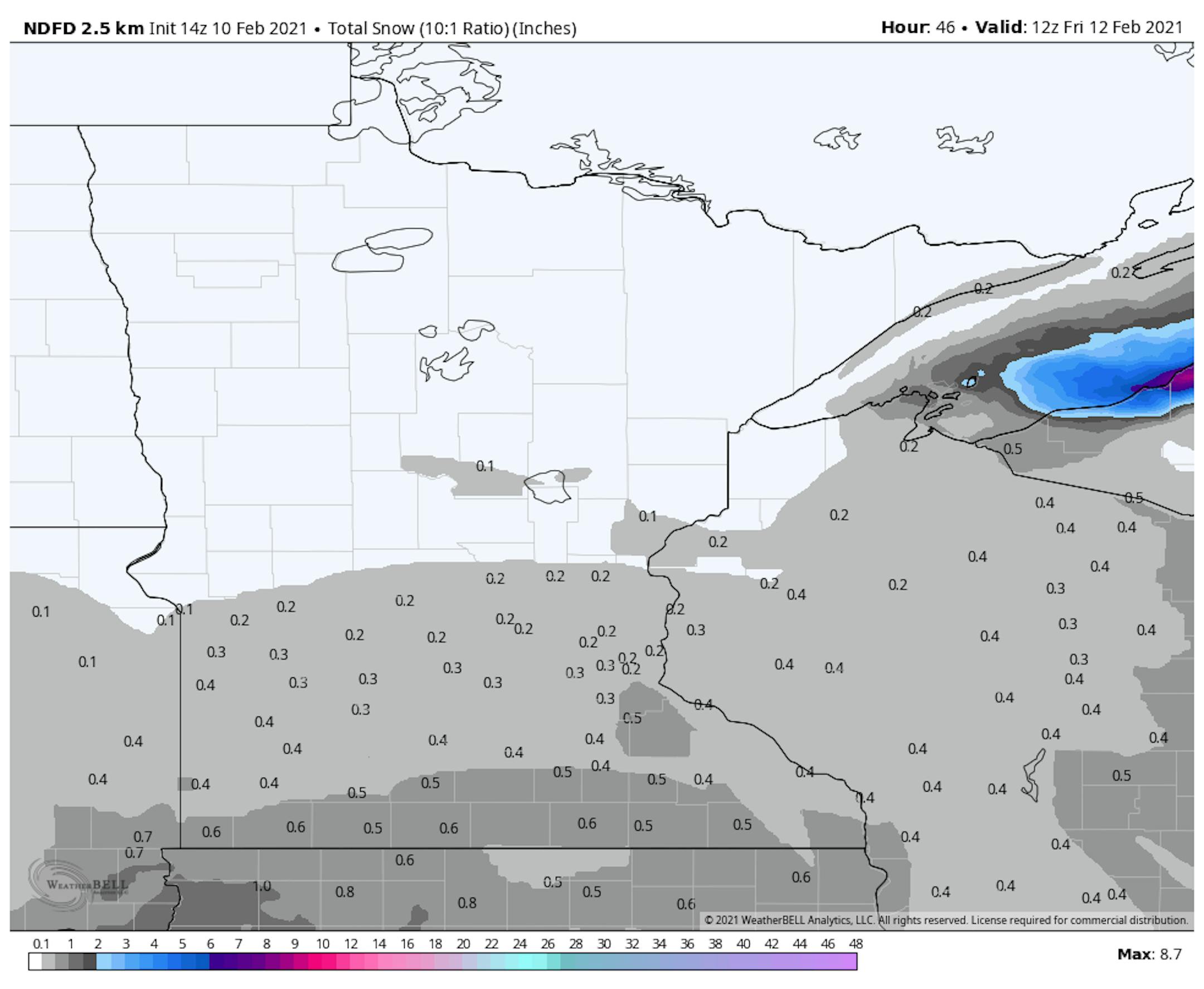 While snow totals are expected to be generally light across southern Minnesota (mainly under half an inch), I would expect very slick conditions during the second half of Thursday, similar to what we saw Monday and Tuesday mornings due to the light snow. This would include the evening commute Thursday. And with bitterly cold temperatures Thursday night, I would not be surprised to see slick spots Friday morning.