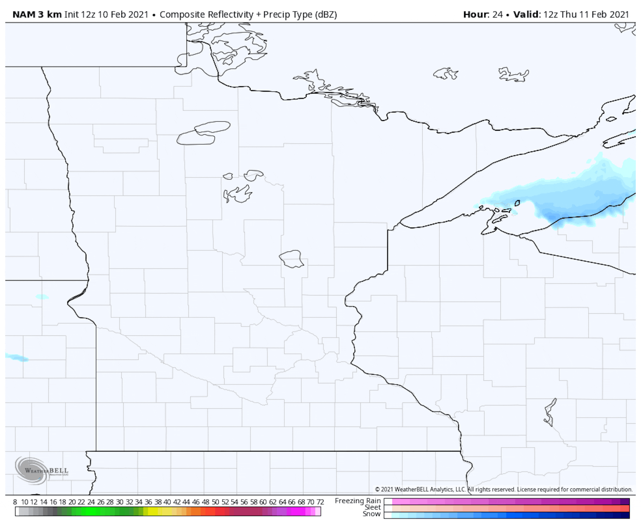 As a system moves through the upper Midwest Thursday, we should see some light snow occur as we go throughout the day into the evening hours across southern Minnesota. While the snow could fall for an extended period of time across portions of southern Minnesota, the dry atmosphere will help limit the amount of snow that actually falls and accumulates. The forecast loop above runs from 6 AM Thursday to Midnight Thursday Night.