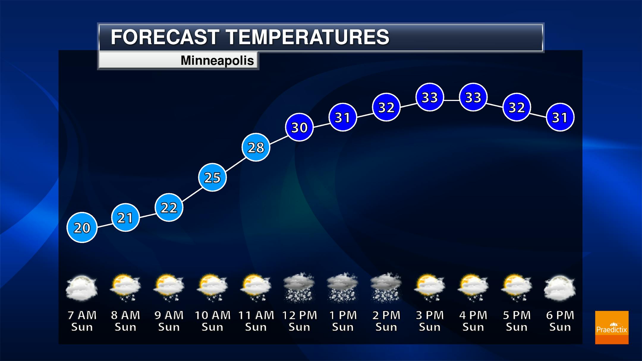 The meteograms for Minneapolis on Wednesday shows temps warming to the lower 30s by the afternoon. After dealing with the Arctic air over the last couple of weeks, Sunday will be very warm. Southeasterly winds will also be a bit on the breezy side with gusts approaching 15mph at times.