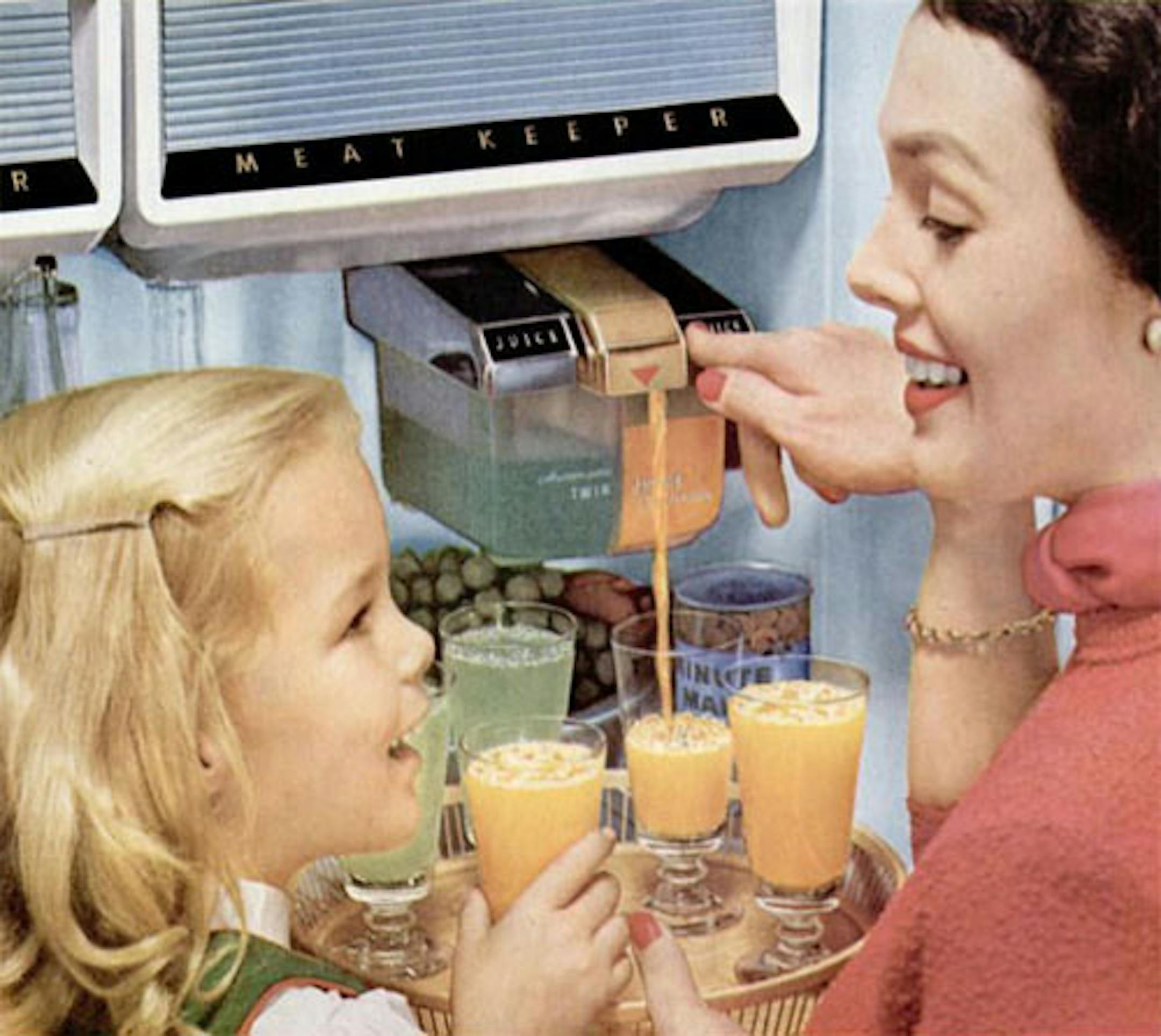 . . . and this delightful innovation, which summed up the glories of 1950s fridges better than anything else. If only you didn't have to refill it! Well, in the future they'll pipe it in, like water.