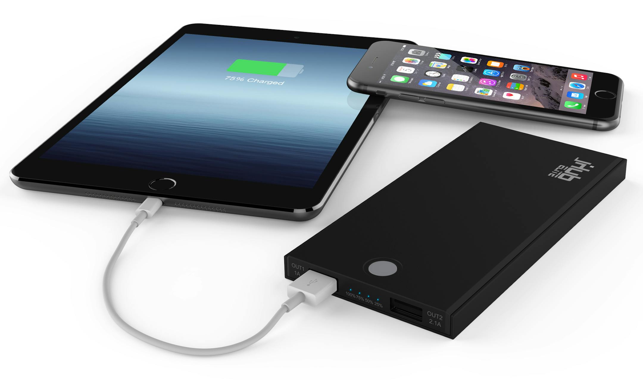 Compared with the jHub Ultra, the jHub Elite is quite an advanced product. Though lightweight, it has twice the power capacity and two charging ports instead of one. The two ports can charge devices simultaneously. One of the ports is a 1-amp port (same as the Ultra), but the other is 2.1-amp fast-charging port, which will charge an iPhone 6 even faster than the wall charger included with the phone. The 2.1-amp port is ideal for tablets as well. The jHub Elite also has a soft-touch off/on button and power meter with charging indicator and is finished in nonslip matte black material that looks and feels very nice. You feel quality when you hold it in your hand.
