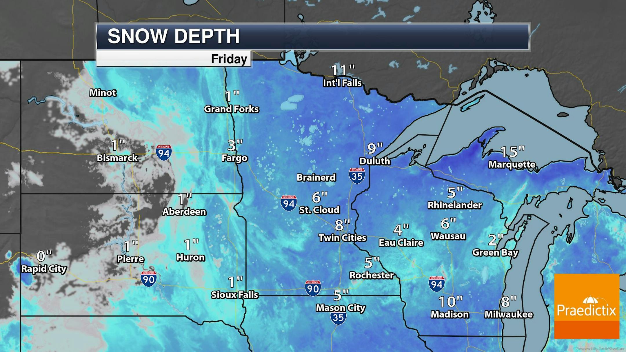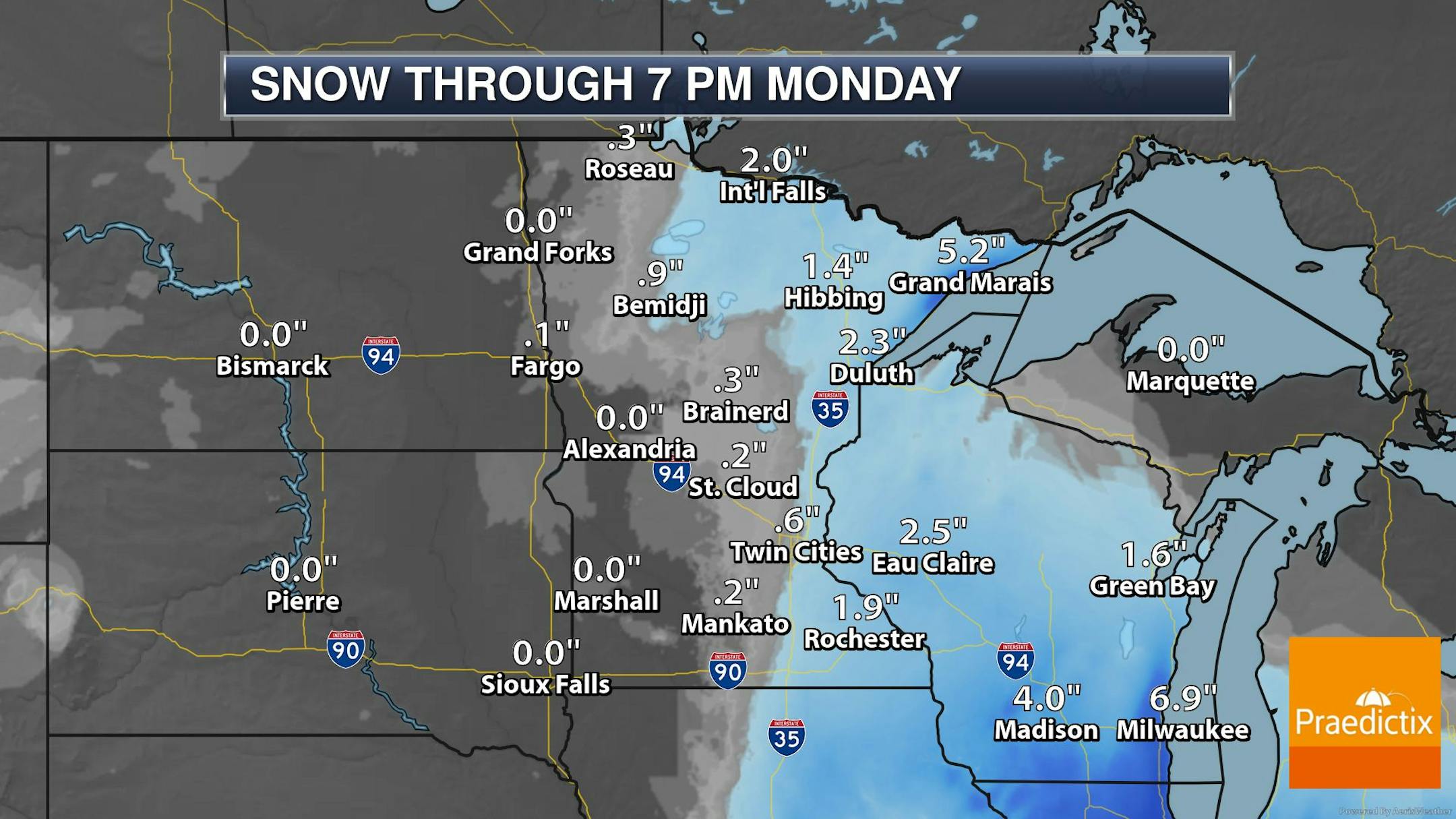 Snowfall totals with this particular system should be pretty light close to home. Some of the heaviest tallies will be found closer to Lake Superior and farther south toward the Quad Cities and Chicago.