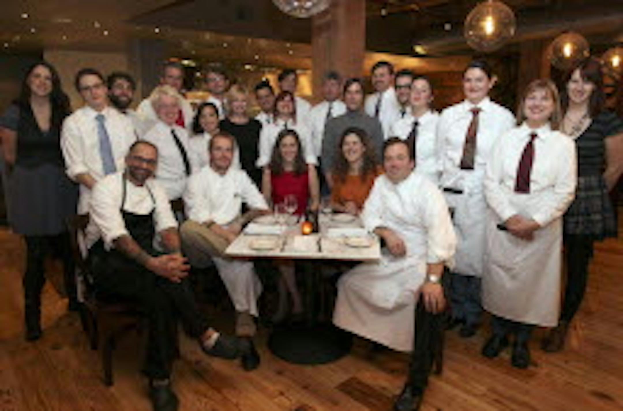 The staff at Bar La Grassa, with co-owners Nancy St. Pierre and Isaac Becker in front row, far right.