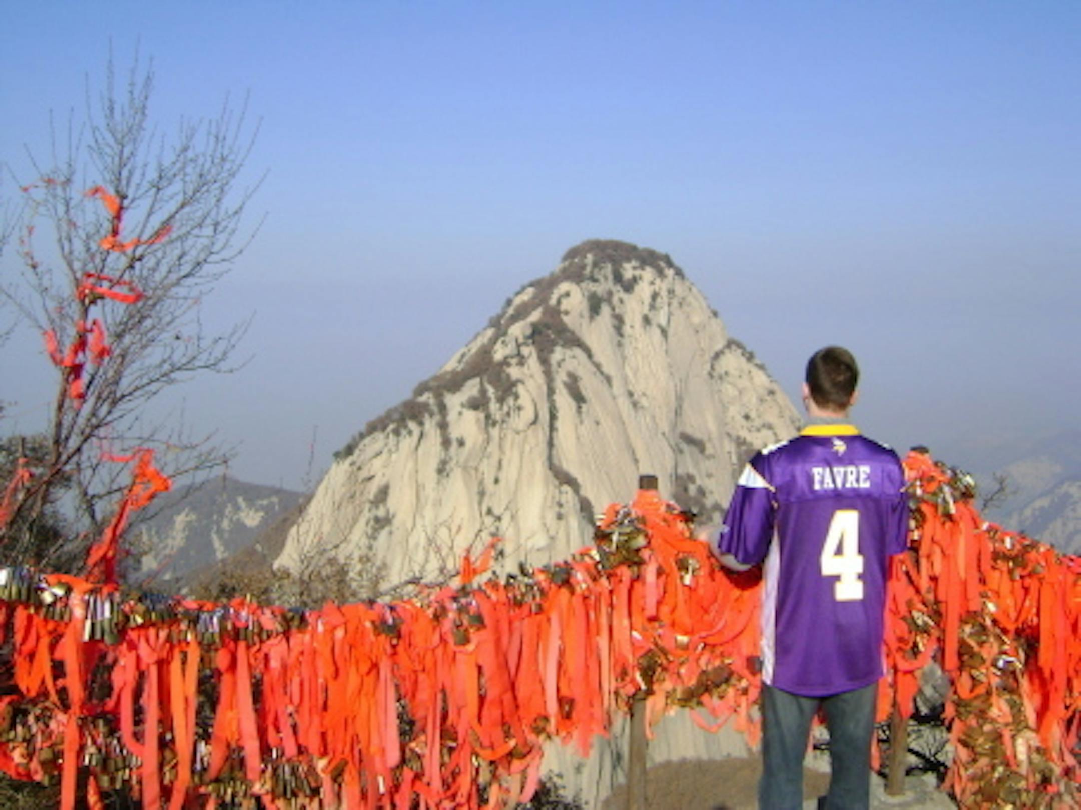 China is home to 5 Taoist mountains that supposedly imbues those who climb them the ability to find "immortality." However, even if you climb one, it can prolong youth. Since I am already traveling around China, I put on the Favre jersey and climbed one in order to give the "old man" one more youthful week. If the Viking keep winning (knock, knock) I'll climb all 5 in order to help out the Vikings and let Favre's arm gain immortality (or at least one more season!). SKOL Vikings.