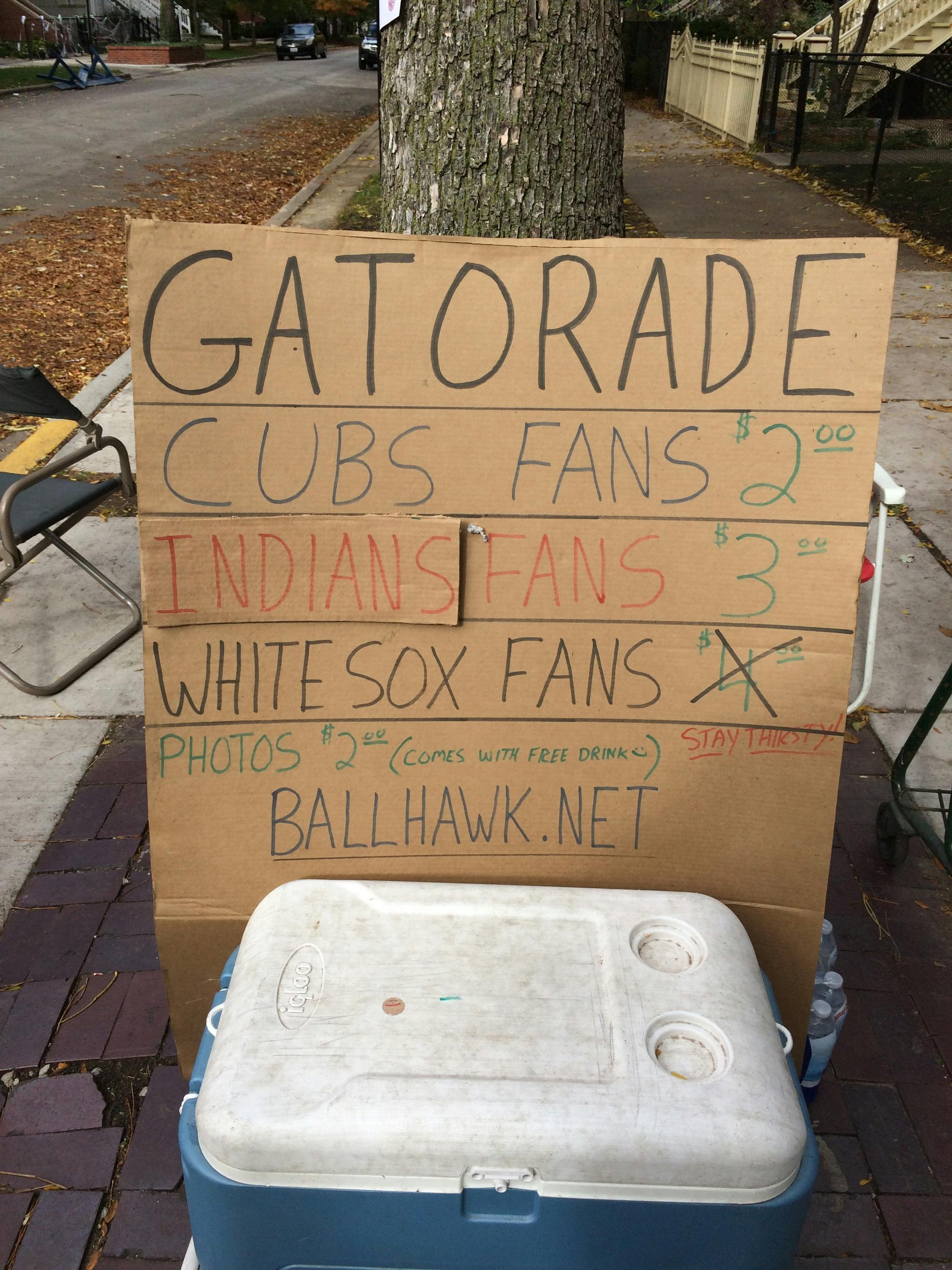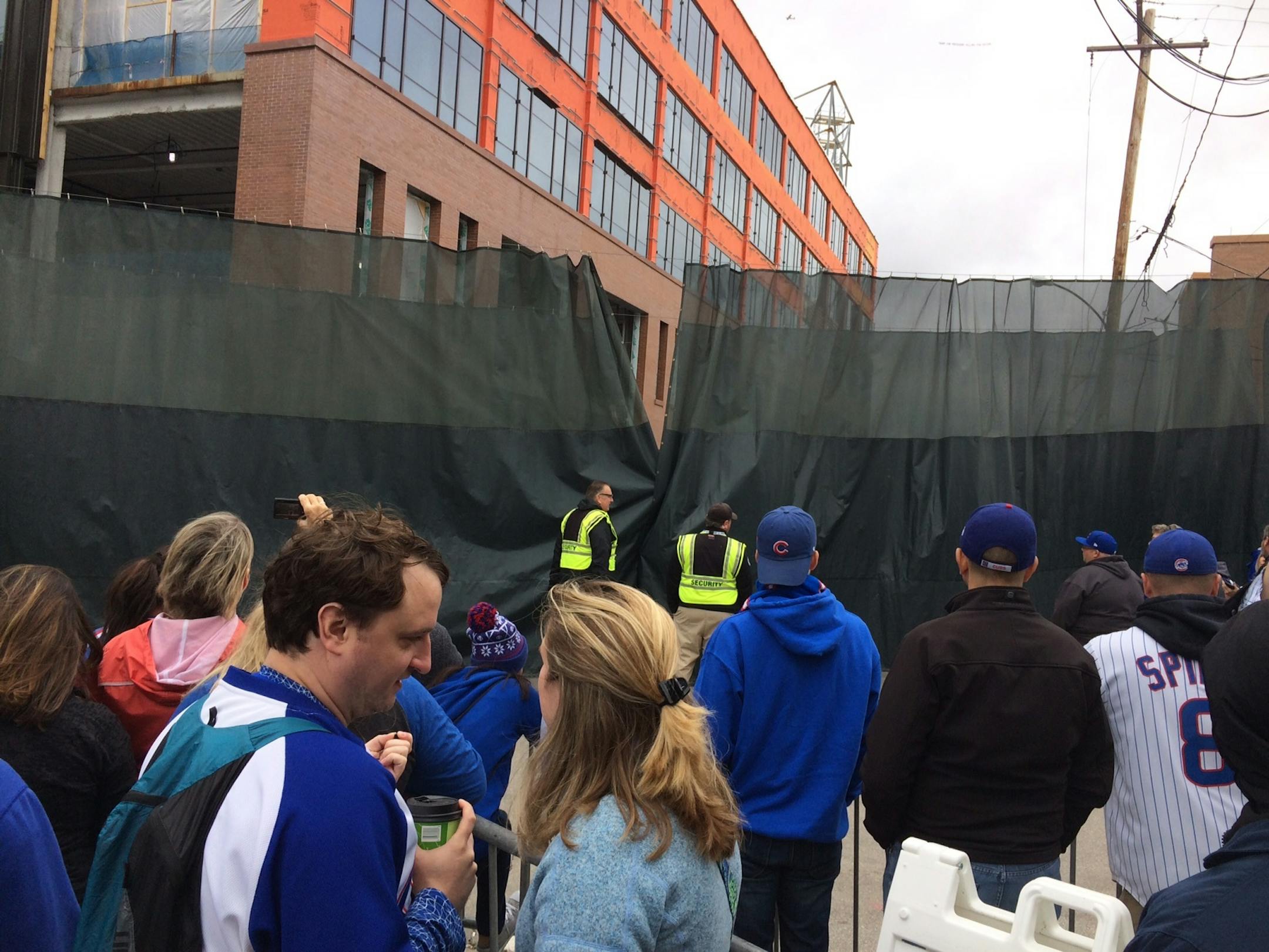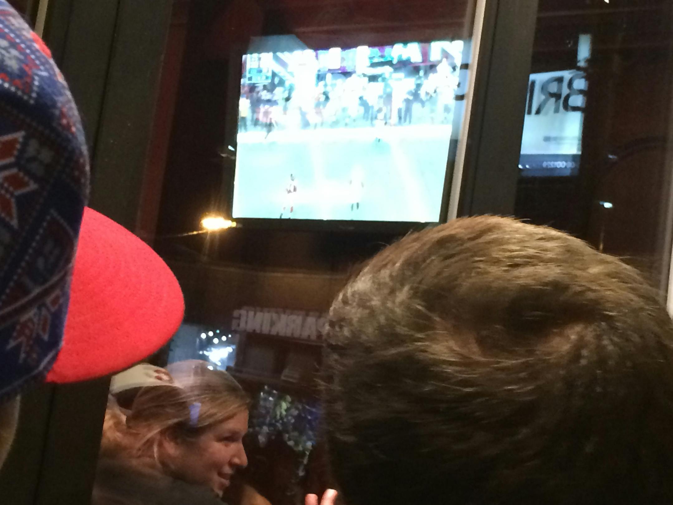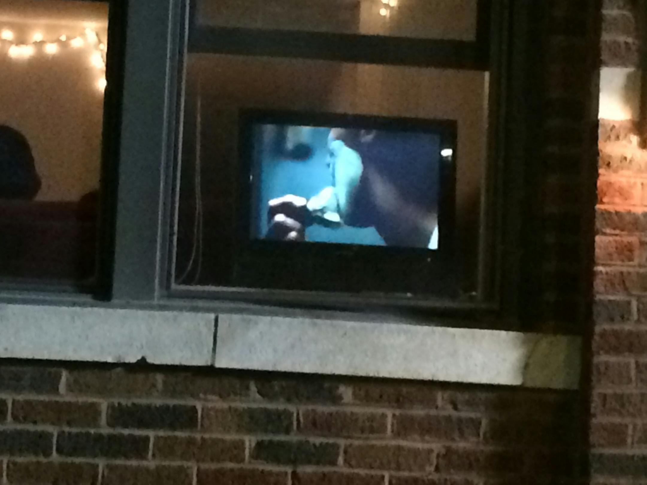 7:25 p.m. -- One of the buildings with rooftop seating put a TV in the window so us sad souls can watch the game.