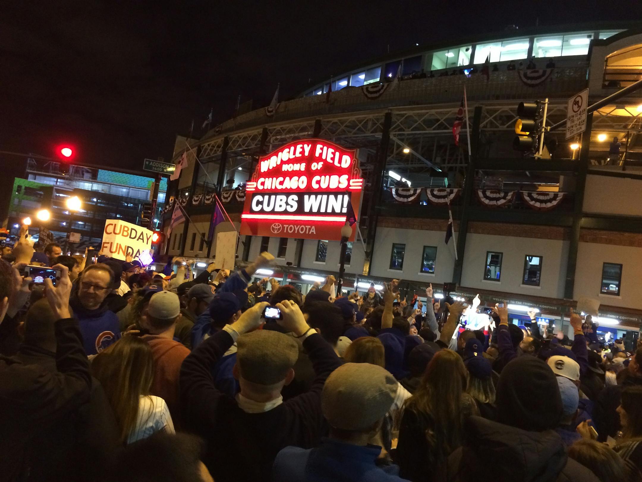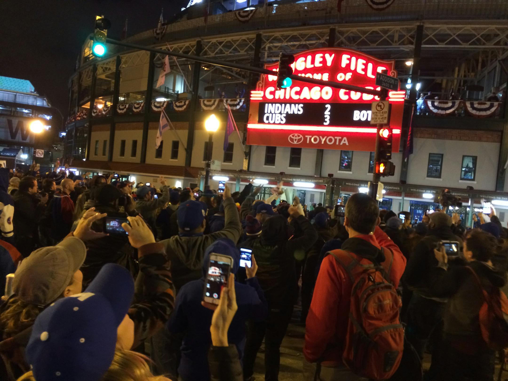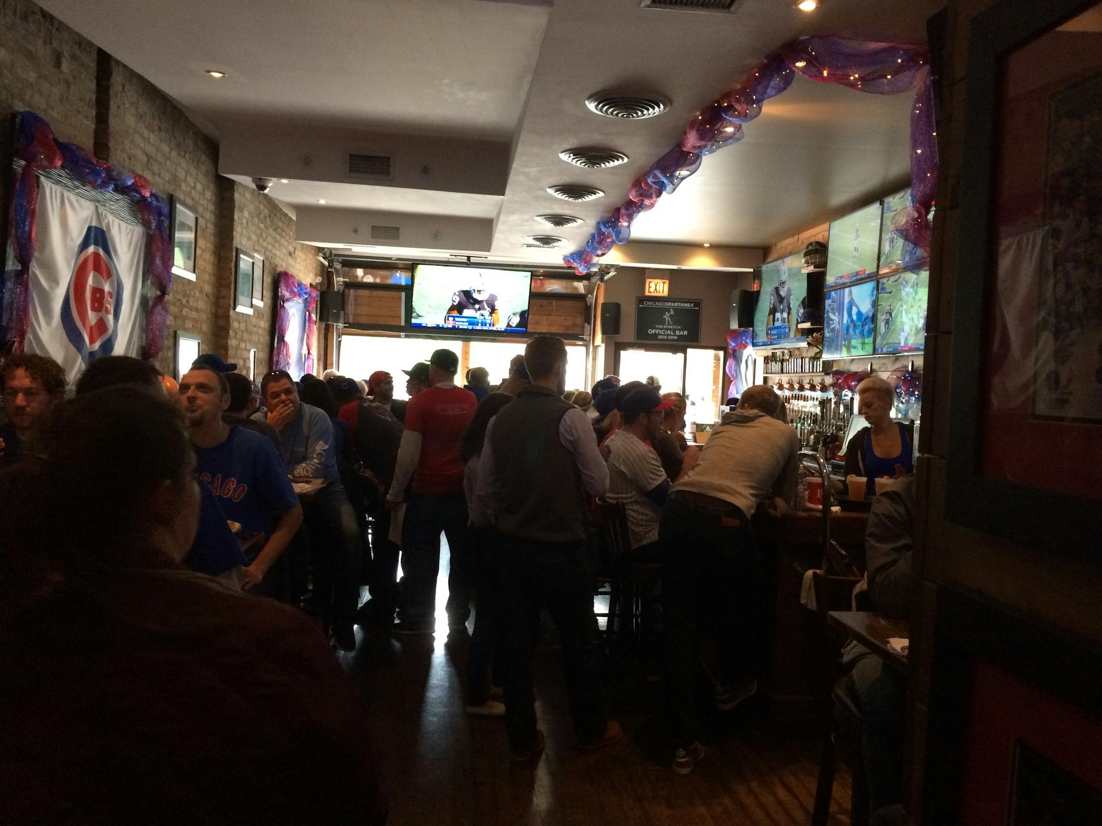 8:17 p.m. -- The bar just erupted after Kris Bryant's home run and Anthony Rizzo's double back to back.