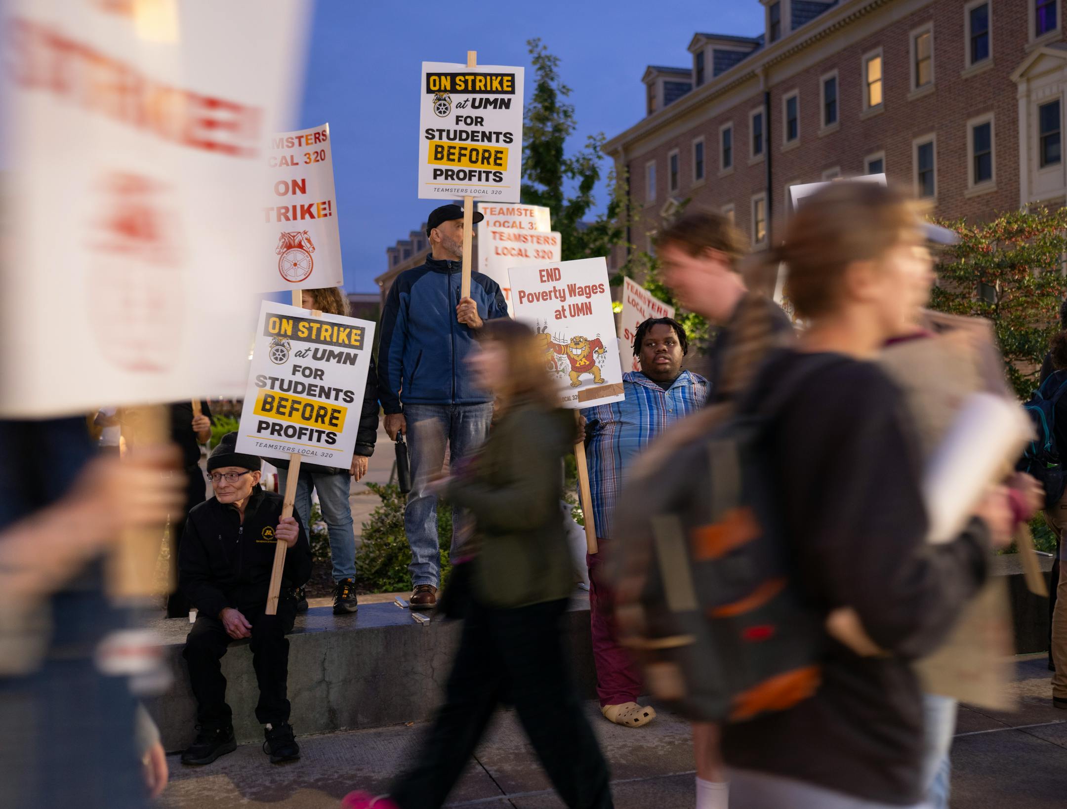 Hundreds of University of Minnesota workers picketed at campuses across the state on Wednesday.