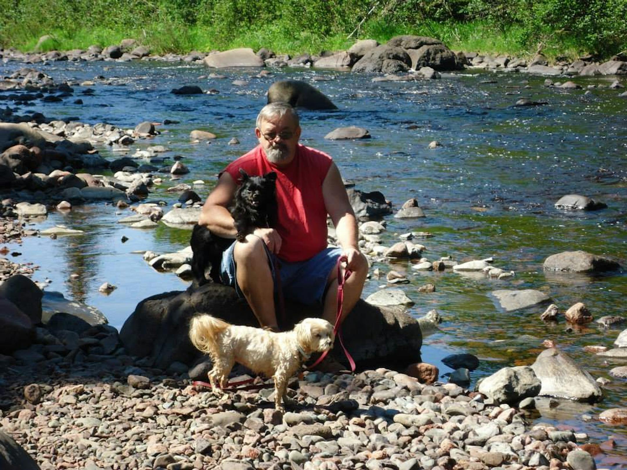 He also loved his "girls" Penny and Franny, (the family dogs). He would take them everywhere he could go--the North Shore, camping, and he loved to have them on his lap for a snuggle.
