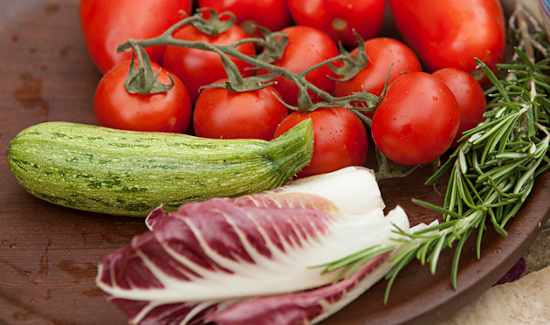 Heirloom zucchini, cherry tomatoes, fresh rosemary and radicchio. Photos © Anna Dvorak
