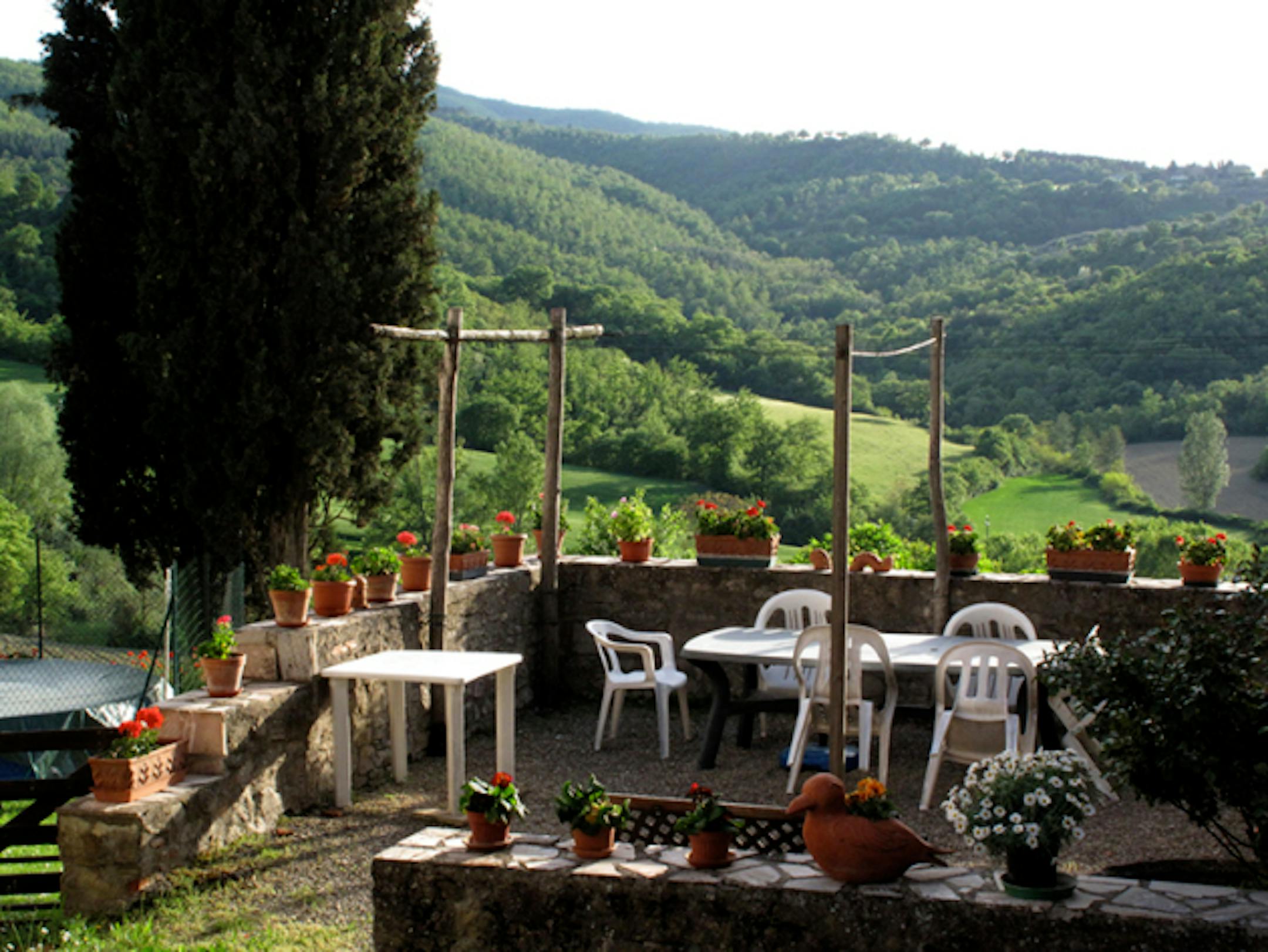 Life in this area is slow-paced, far away from city air or noises and charmingly beautiful. A bread truck lumbers up the road once a week to deliver Tuscan loaves of any size, and farmers and neighbors who take the shortcut to the next village over putter up and down the hill at random during the day. The neighbor nonna walks slowly out to her garden daily to pick a head of lettuce for dinner and rinses it under the cistern faucet before returning to her kitchen.