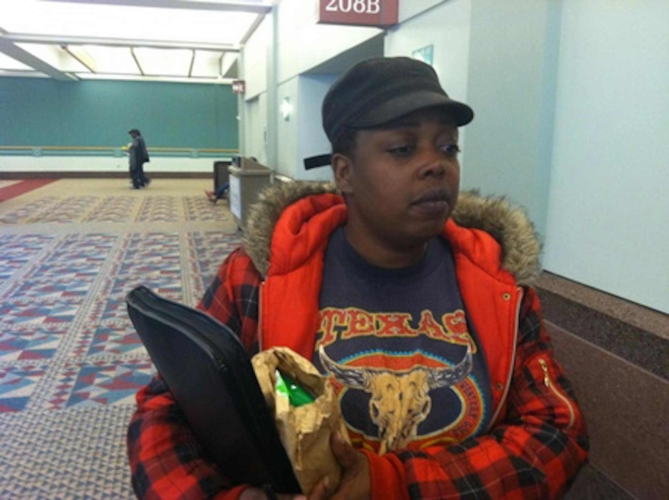 A place to sleep, food, clothing, a hot shower - she would be seeking all of these if anyone behind the tables called her number. But the folks with the Salvation Army were only up to about 50, and her little slip of paper said 215.