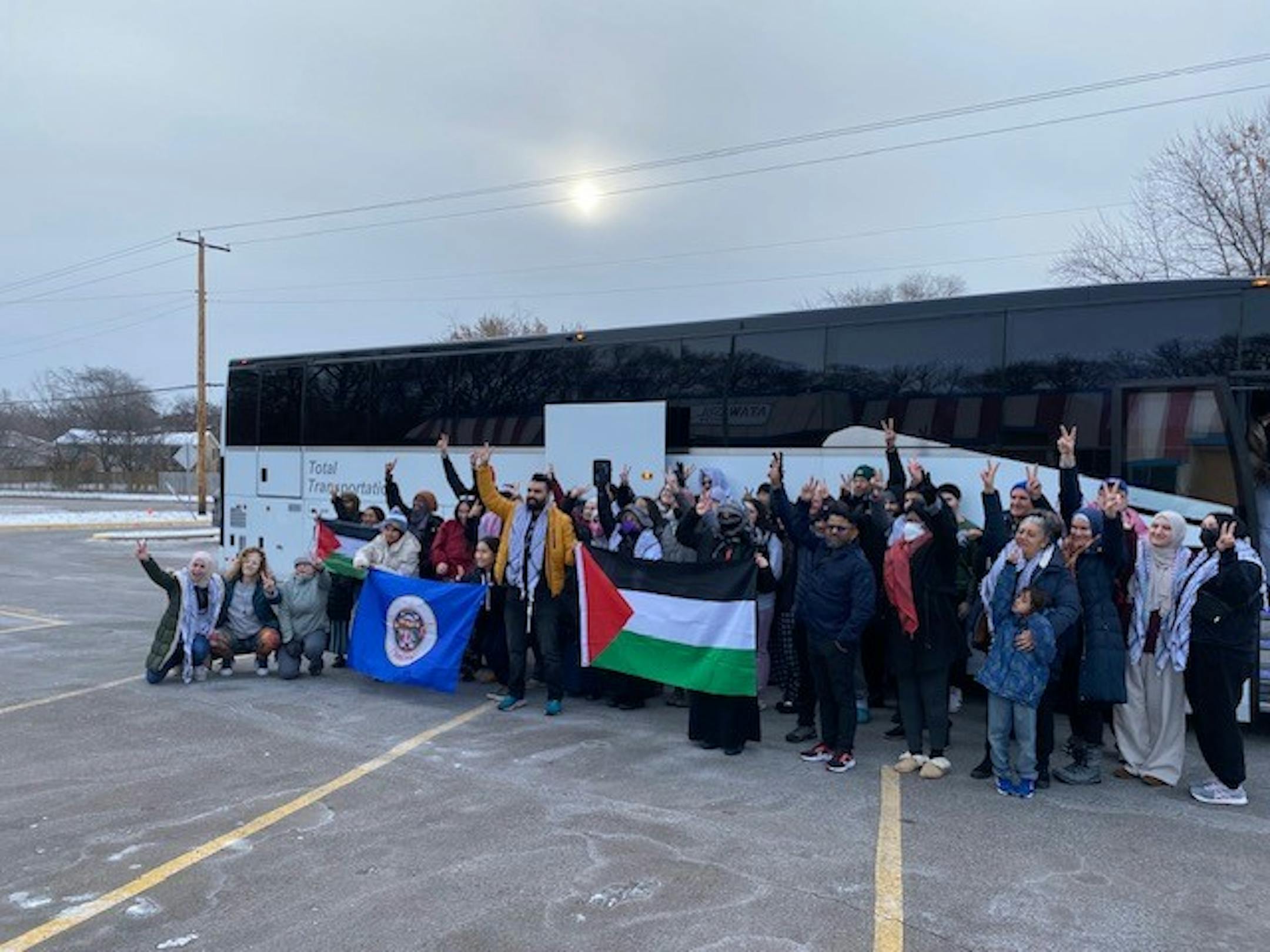 A group of 52 Minnesotans boarded a bus Friday in Brooklyn Park to participate in the "March on Washington for Gaza" on Saturday, demanding an immediate cease-fire in the Israel-Hamas war and an end to "U.S. funding of Israel's genocide."