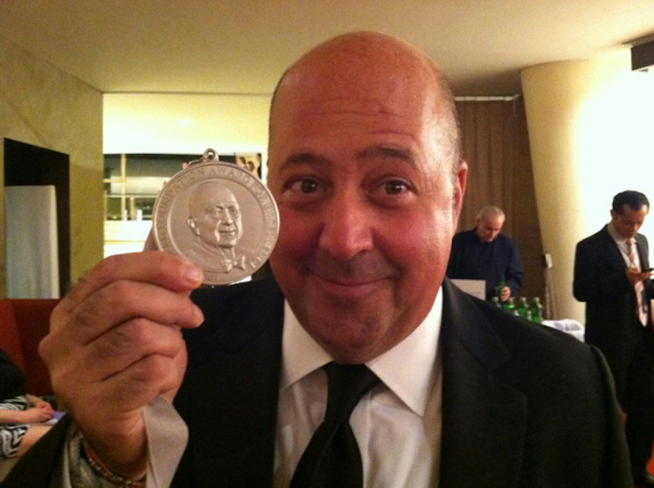 Andrew Zimmern won an award in the category of best host/personality for his"Bizarre Foods America" program on the Travel Channel. (He's pictured here with last year's award.)