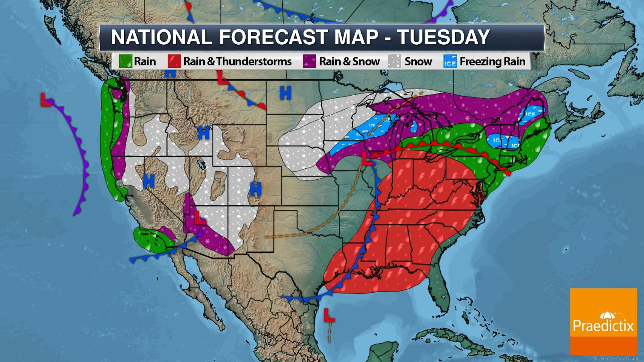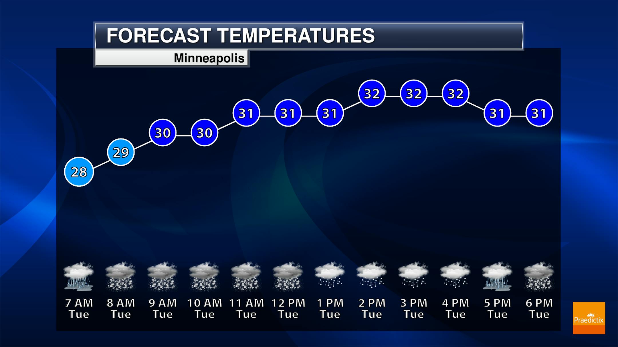 - Snowfall rates of 1 to 2 inches per hour are likely for a few hours Tuesday morning into Tuesday afternoon.