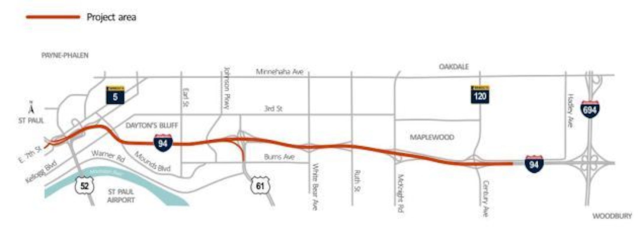 - Resurface eastbound and westbound I-94 between Mounds Blvd. to east of Hwy 120/Century Avenue.