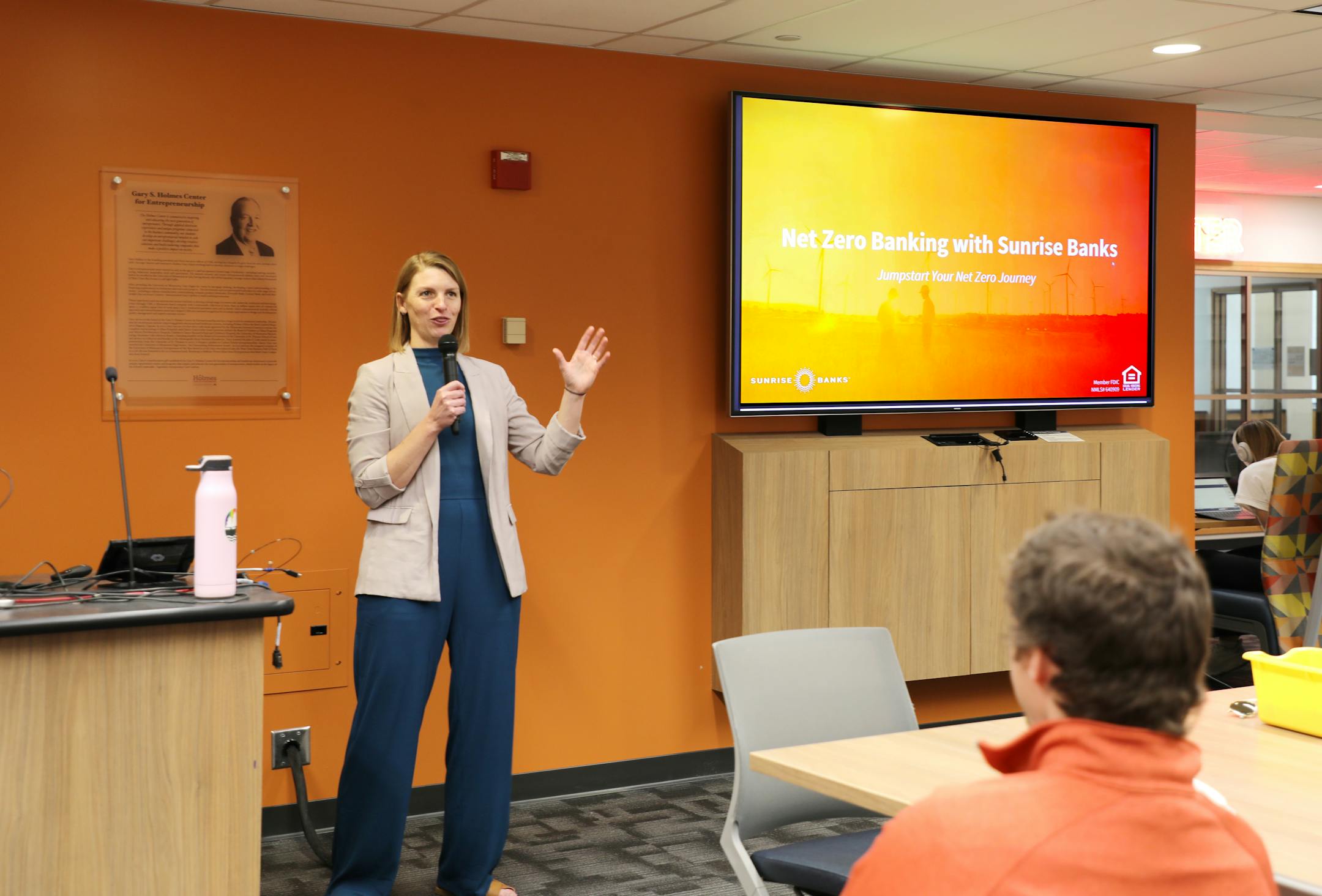 “That work helped me see how the relationship between deposits and lending could be used to support our customers’ carbon reduction efforts while advancing our bank’s own net zero goals,” says Wildenborg, who is now the vice president of strategic lending at Sunrise Banks.